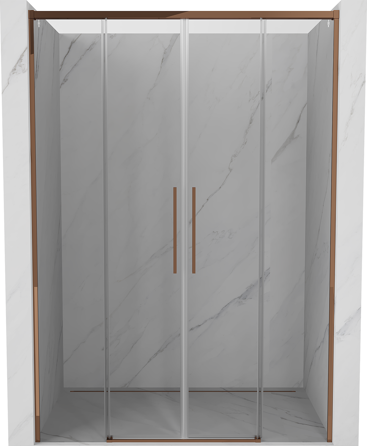 Mexen Rox Dvigubos slankiosios dušo durys 160 cm, skaidrios, rožinis auksas - 8C2-160-002-60-00