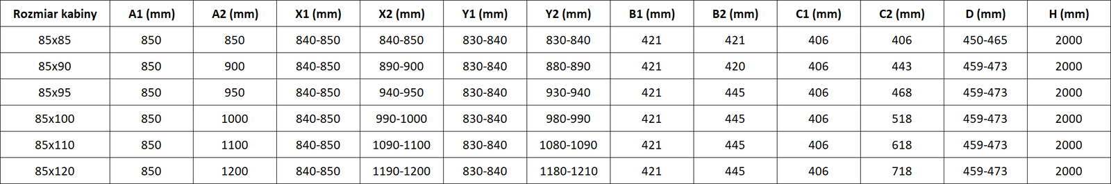 Dušo kabinos, durys ir sienelės yra standartiškai pritaikytos montuoti ant nustatytų matmenų dušo padėklų. Būtent šie matmenys nurodomi gaminio pavadinime arba aprašyme. Tačiau atkreipkite dėmesį, kad faktiniai elementų matmenys gali šiek tiek skirtis nuo vardinių verčių. Planuojant montuoti tiesiai ant grindų, rekomenduojama atidžiai patikrinti išorinius matmenis ir elementų išdėstymą pagal techninį brėžinį.