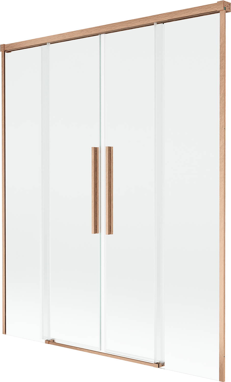 Mexen Rox dviejų sparnų stumdomas vonios kambario ekranas 160 x 150 cm, skaidrus, šlifuota varis - 8C9-160-002-65-00