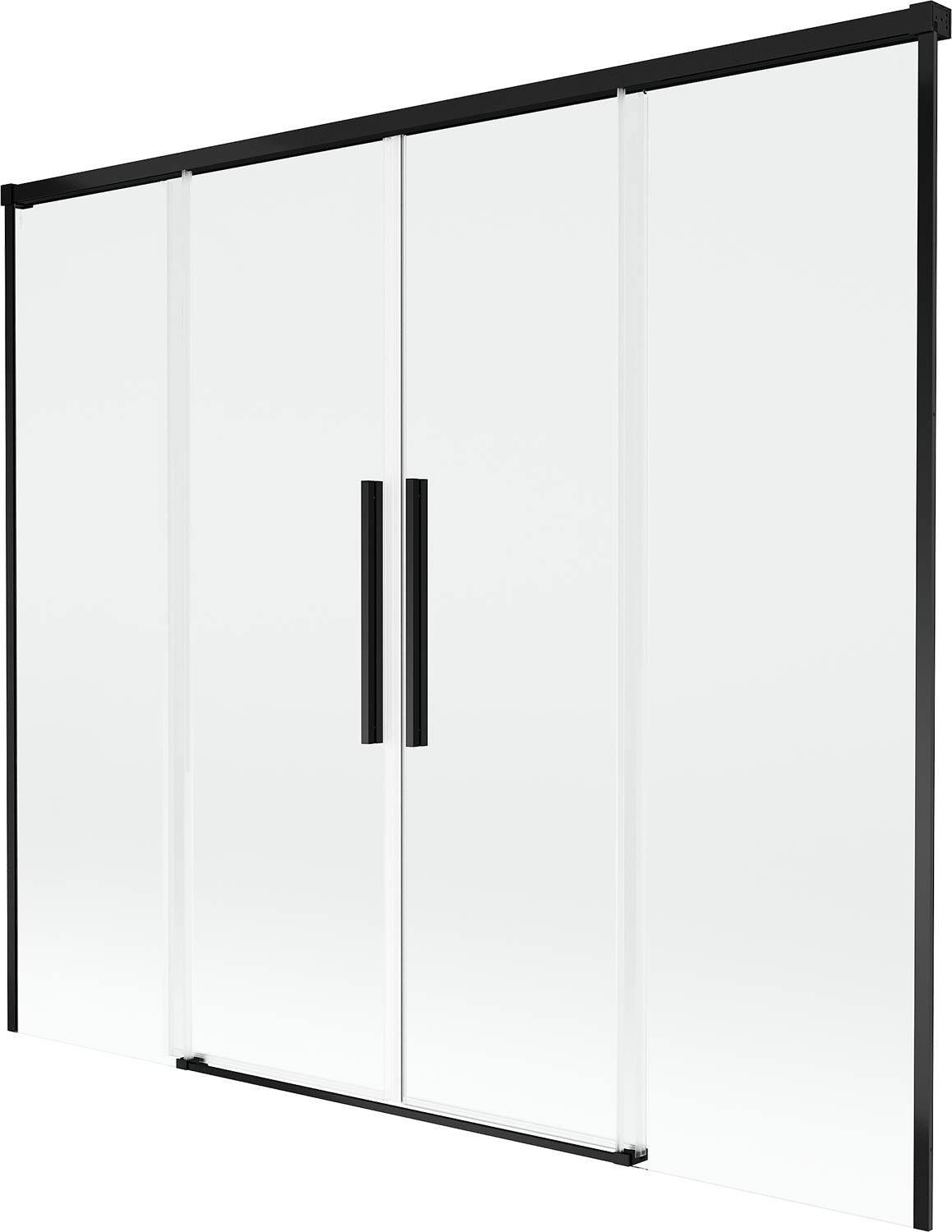 Mexen Rox vonios sulankstomas dušo kabinos ekranas, 2 dalių, stumdomas, 180 x 150 cm, permatomas, juodas - 8C9-180-002-70-00