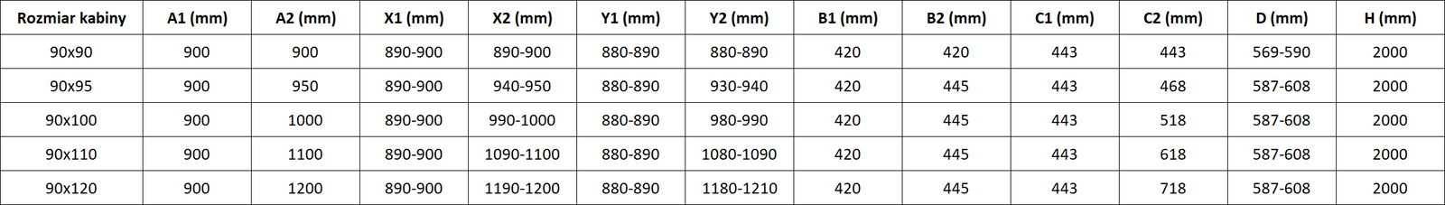 Dydis: 90x90 cm (dešinės durys 90 cm, kairės durys 90 cm)