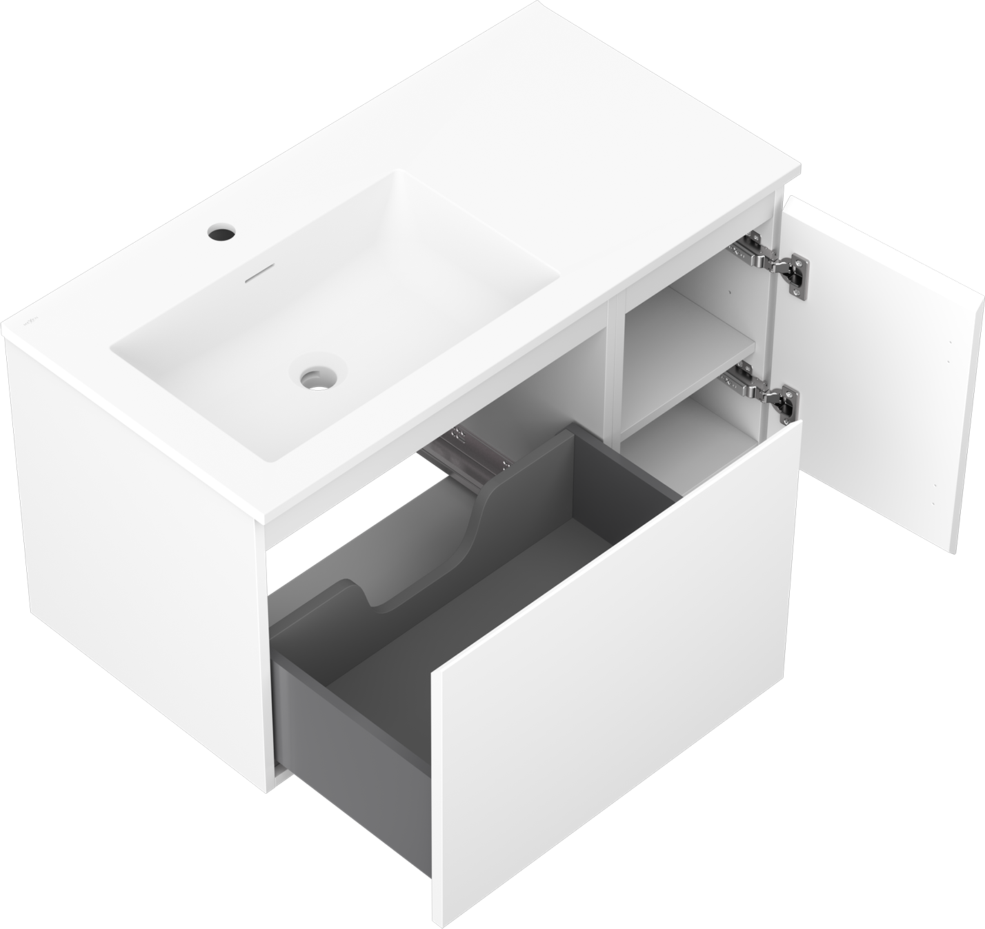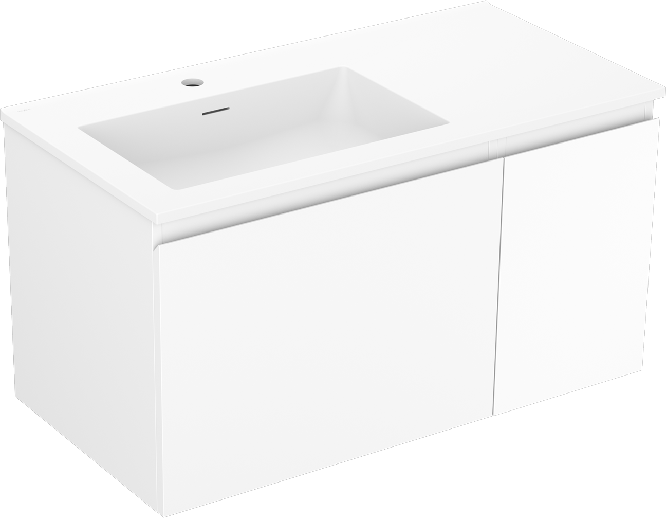 Mexen Orio vonios kambario spintelė 90 cm su Otis kairine kriaukle, 1S, 1D, balta matinė - 91A13-09047-3-BBFF01-W18L01