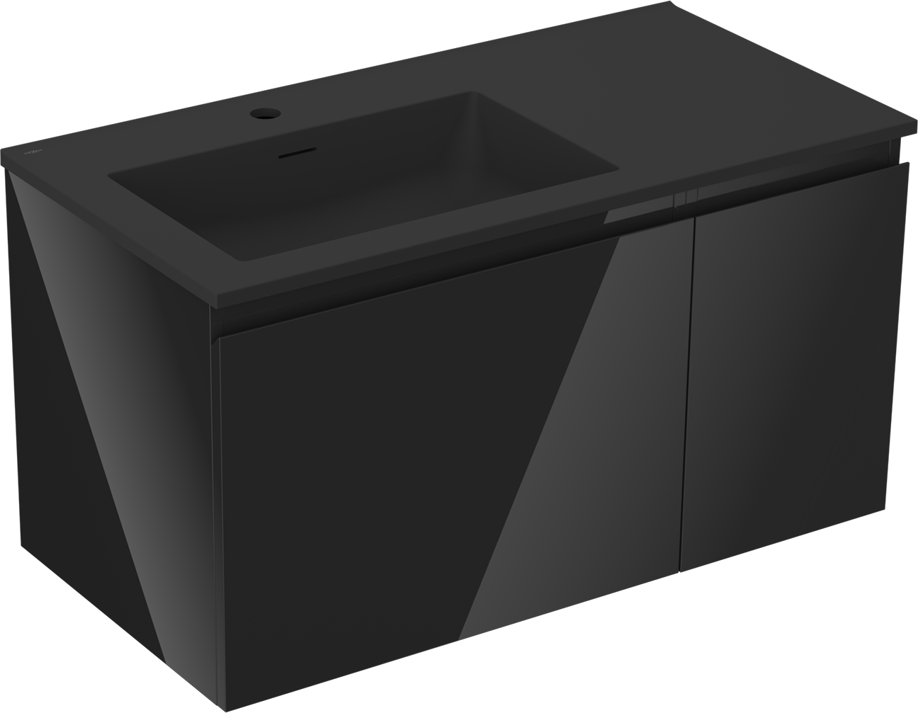 Mexen Orio vonios spintelė 90 cm su kairine Otis plautuve, 1S, 1D, juoda blizgi/juoda matinė - 91A13-09047-3-BBFF70-W18L71
