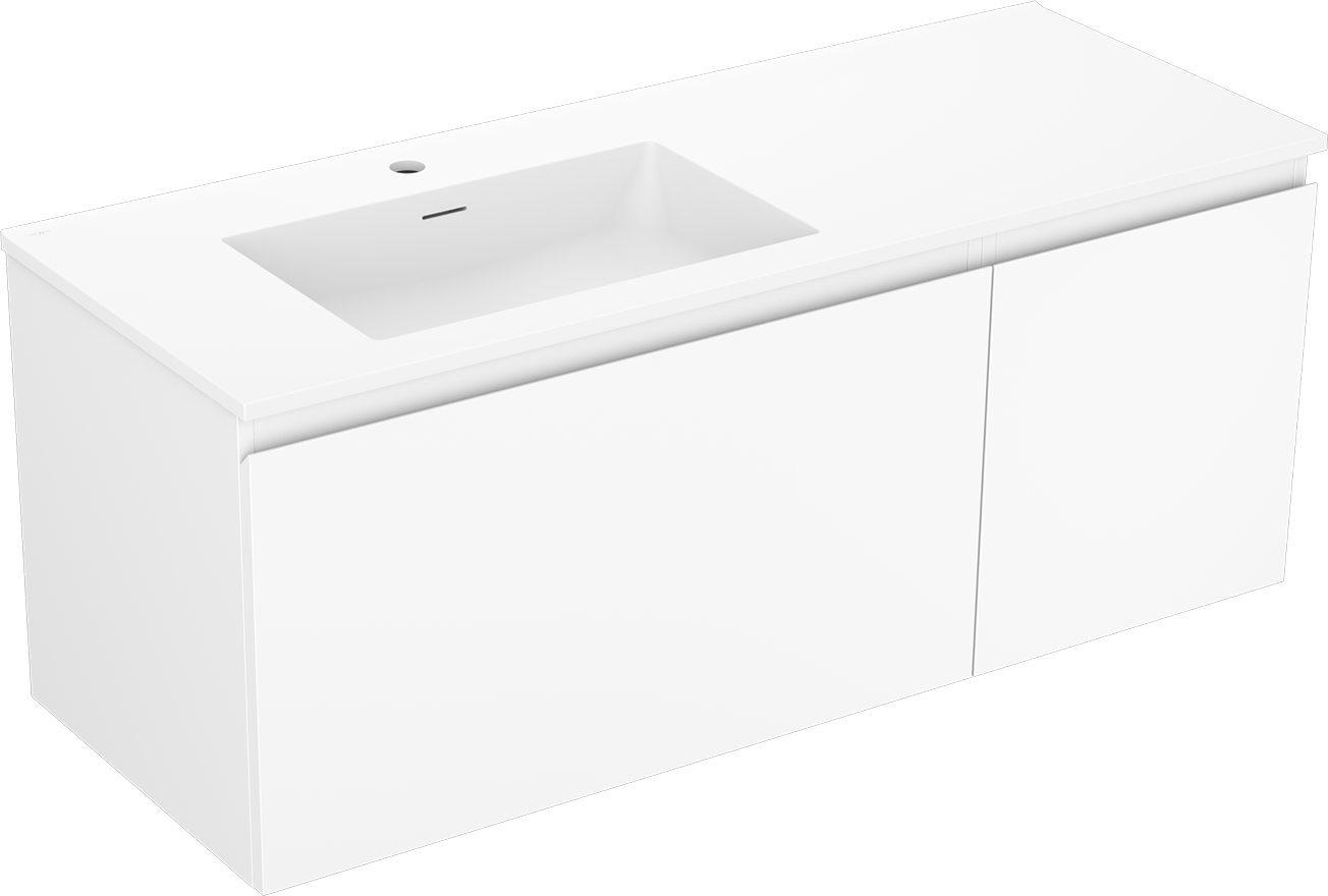 Mexen Orio vonios kambario spintelė 120 cm su Otis kaire kriaukle, 1S, 1D, balta matinė - 91A13-12047-3-BBFF01-W18L01