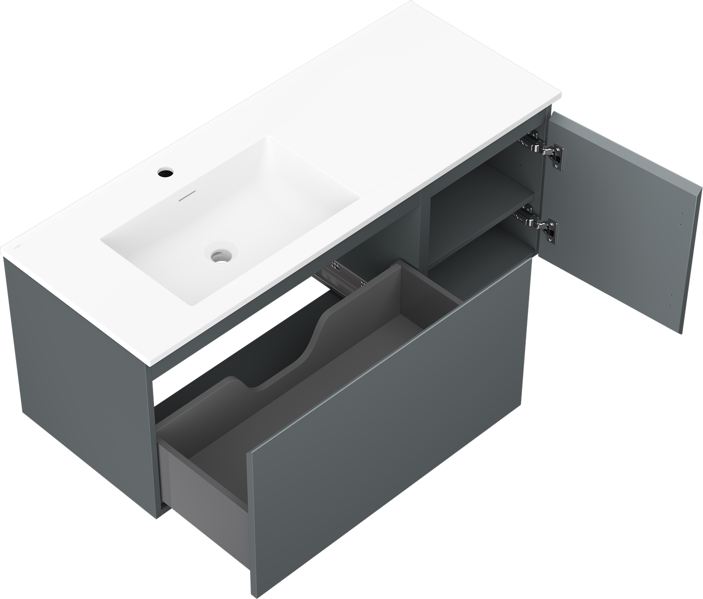 Mexen Orio vonios spintelė 120 cm su kairine Otis praustuve, 1S, 1D, grafito matinė/balta matinė - 91A13-12047-3-BBFF66-W18L01