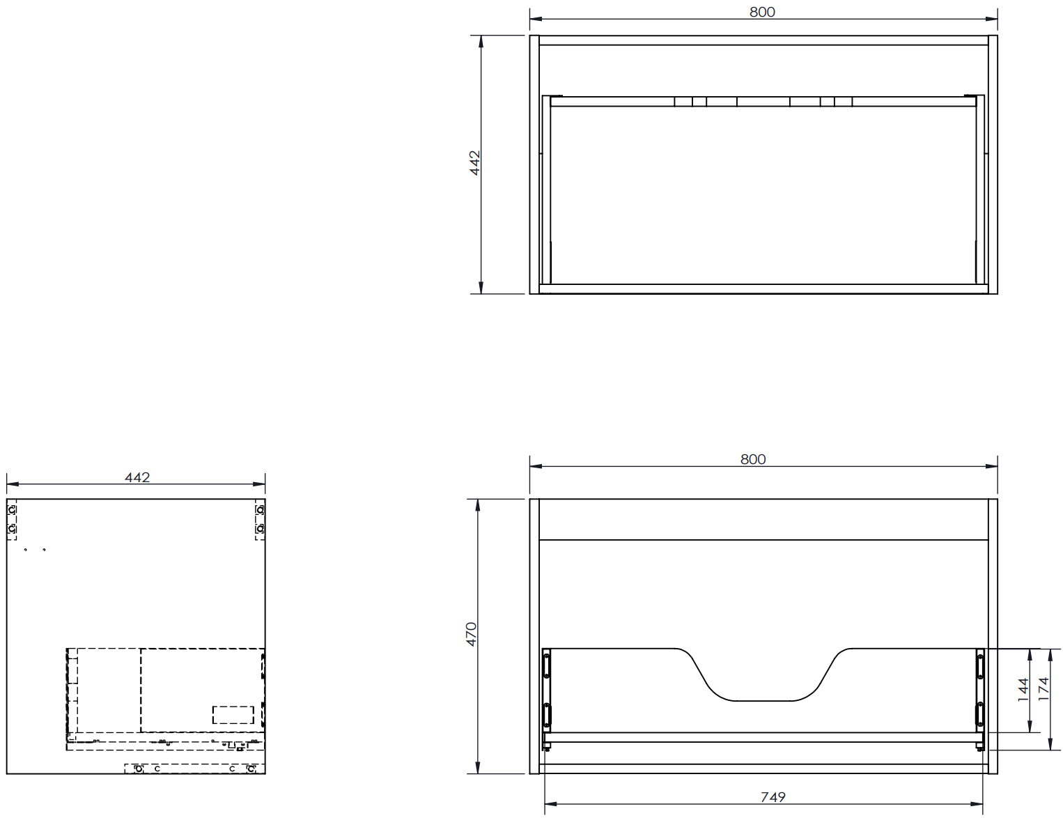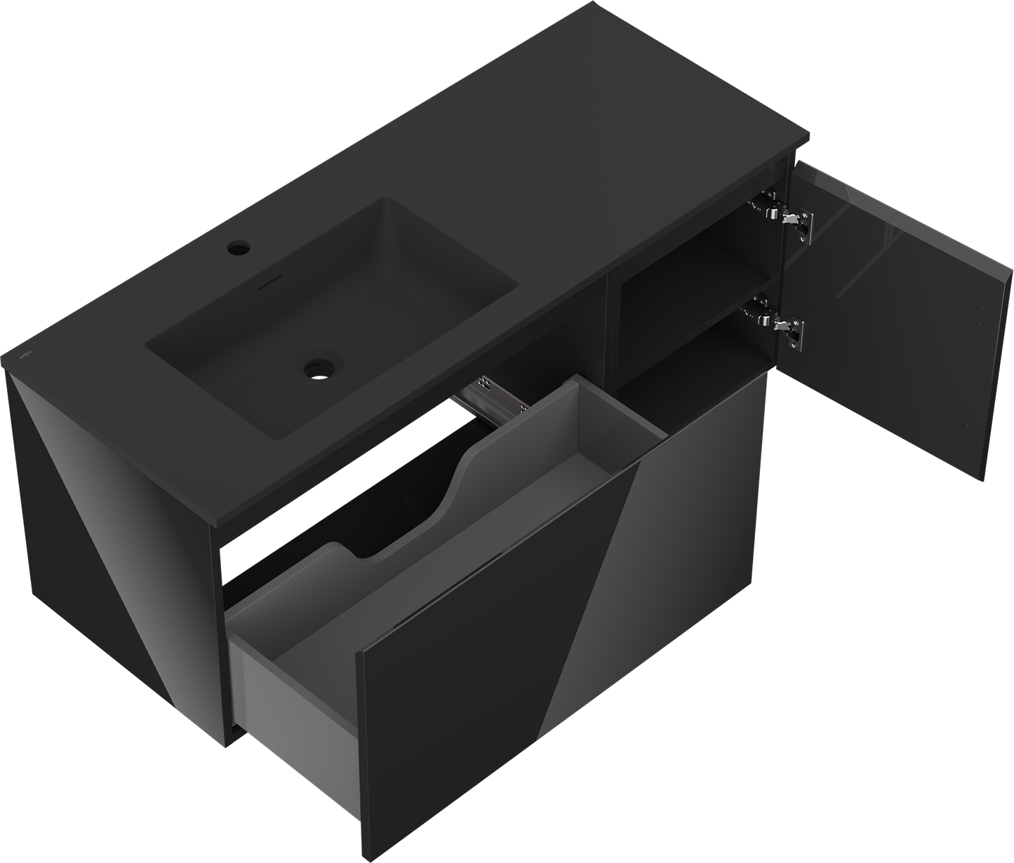 Iškirpimas stalčiuje yra suprojektuotas taip, kad tilptų sifonas, kuris yra būtinas kriauklės įrenginiuose. Dėl to baldas gali būti pilnai funkcionaliai sumontuotas, nereikalaujant atsisakyti vietos stalčiuje dėl įrenginio.
