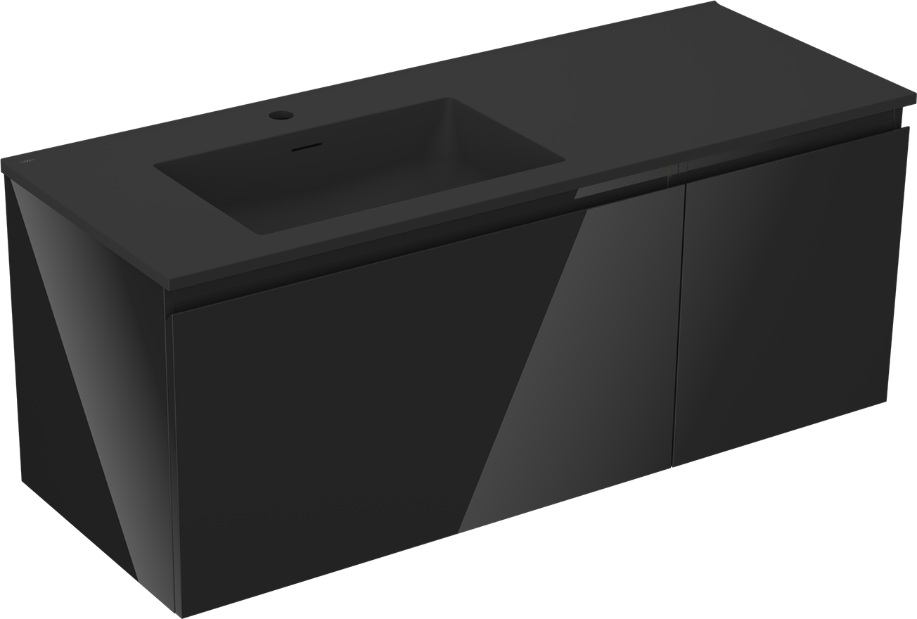 Mexen Orio vonios spintelė 120 cm su Otis kriaukle kairine, 1S, 1D, juoda blizgi/juoda matinė - 91A13-12047-3-BBFF70-W18L71