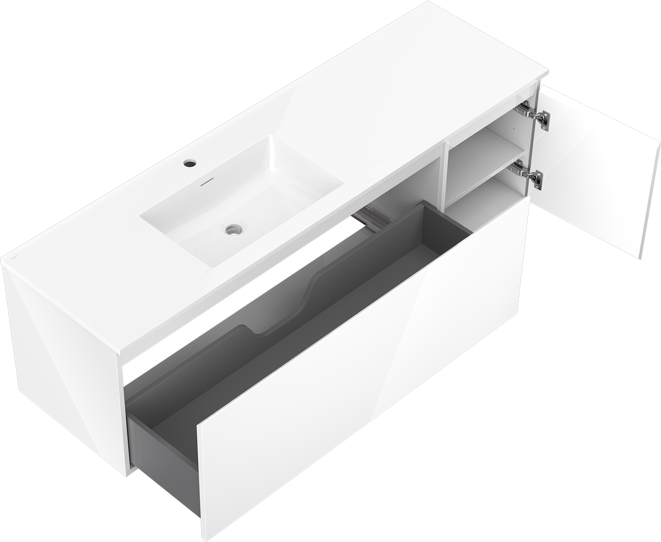 Mūsų moduliniai vonios baldai gali būti derinami tarpusavyje įvairiomis spalvų konfigūracijomis, leidžiant visiškai pritaikyti pagal asmeninius poreikius. Galima pasirinkti tiek atskirų elementų išvaizdą, tiek funkcijas, kas leidžia baldus pritaikyti pagal savo stiliaus ir naudojimo preferencijas.