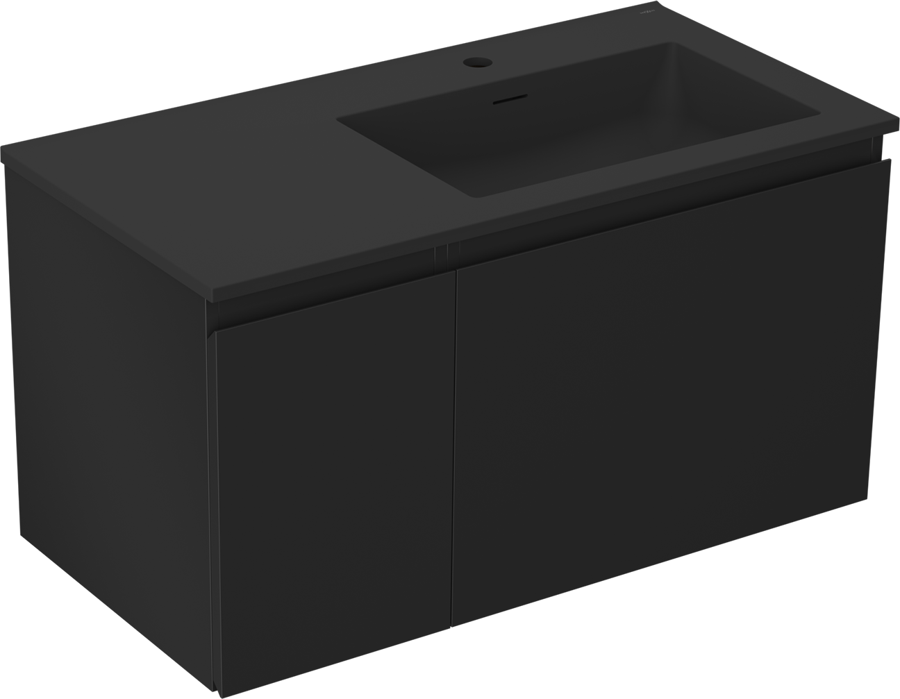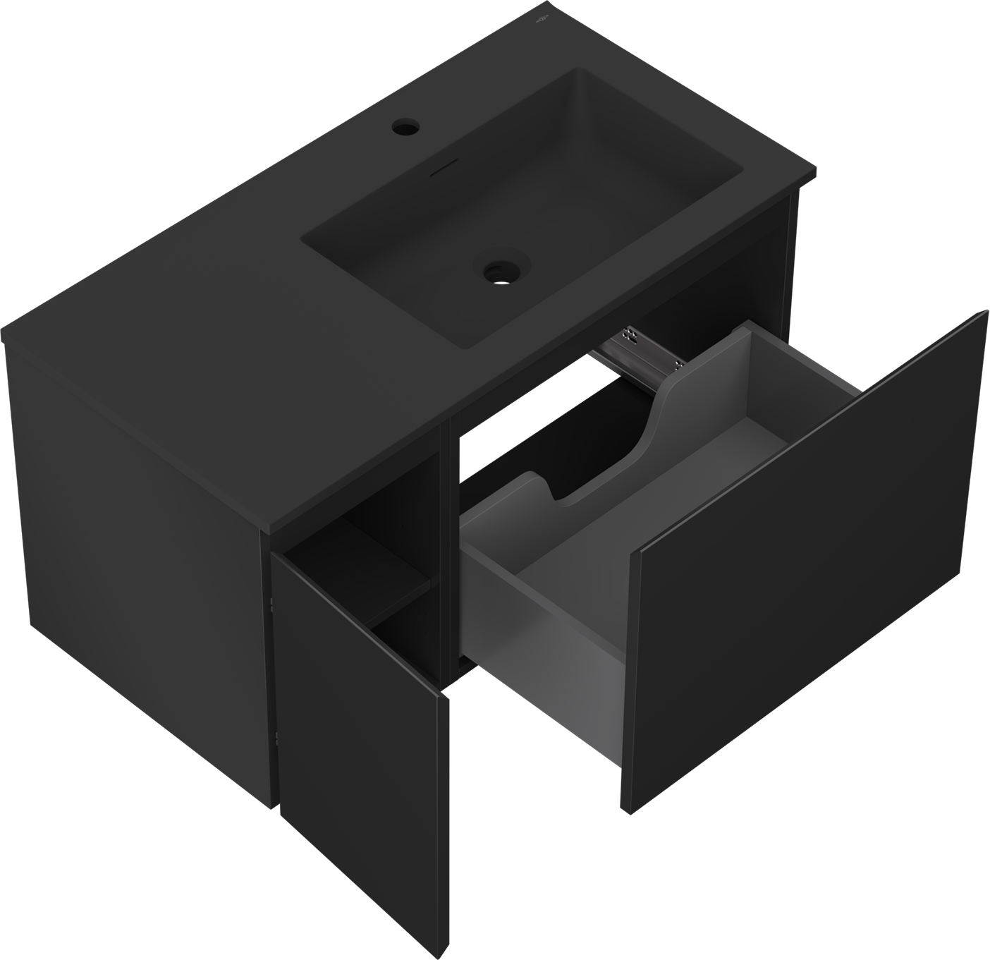 Mexen Orio vonios kambario spintelė 90 cm su Otis kriaukle dešinėje, 1S, 1D, juoda matinė - 91A13-09047-3-BBFF71-W18P71