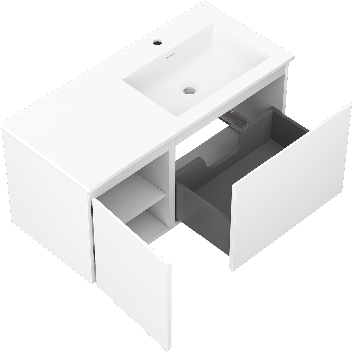 Mexen Orio vonios spintelė 100 cm su praustuvu Otis dešinė, 1S, 1D, balta matinė - 91A13-10047-3-BBFF01-W18P01