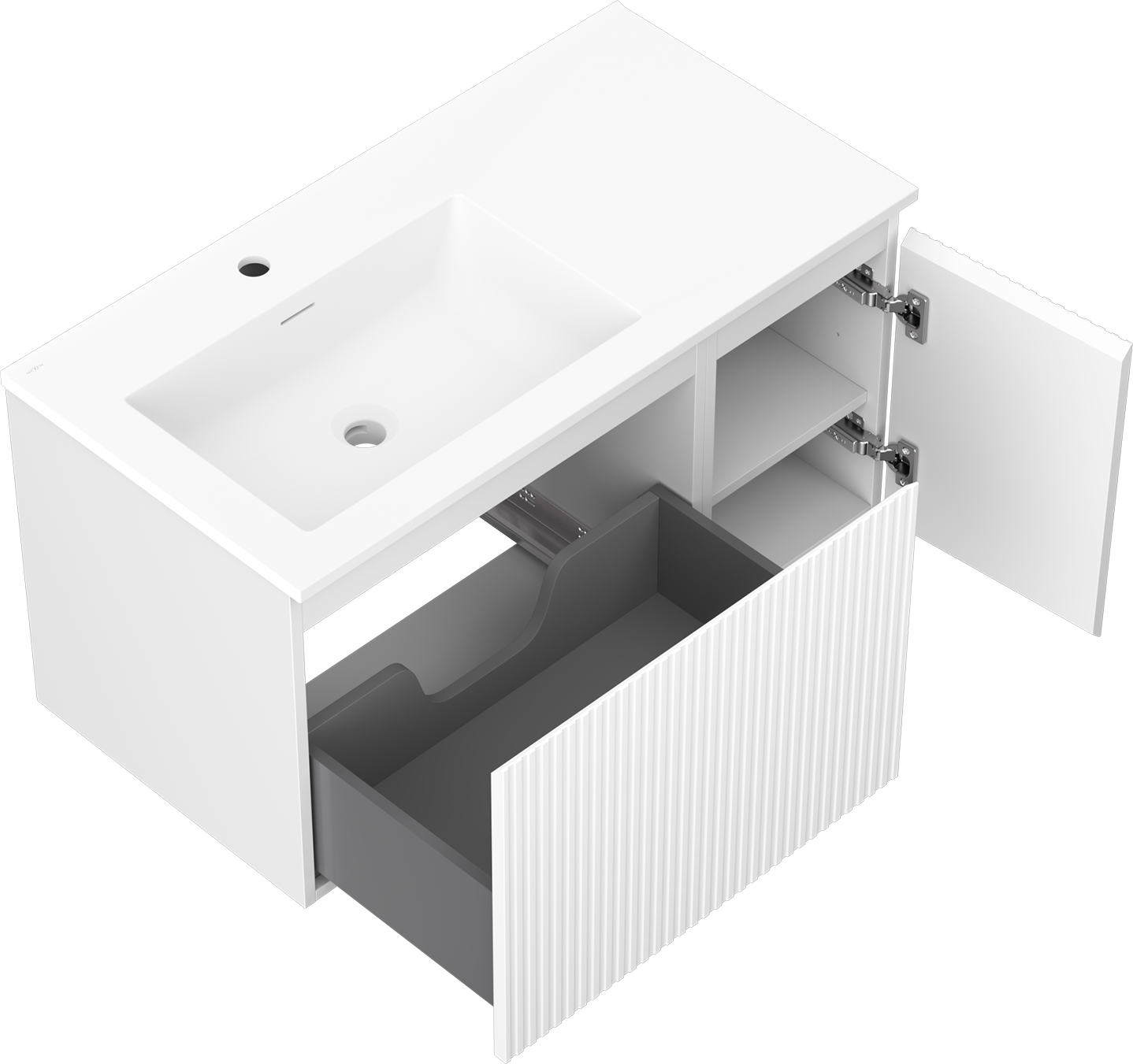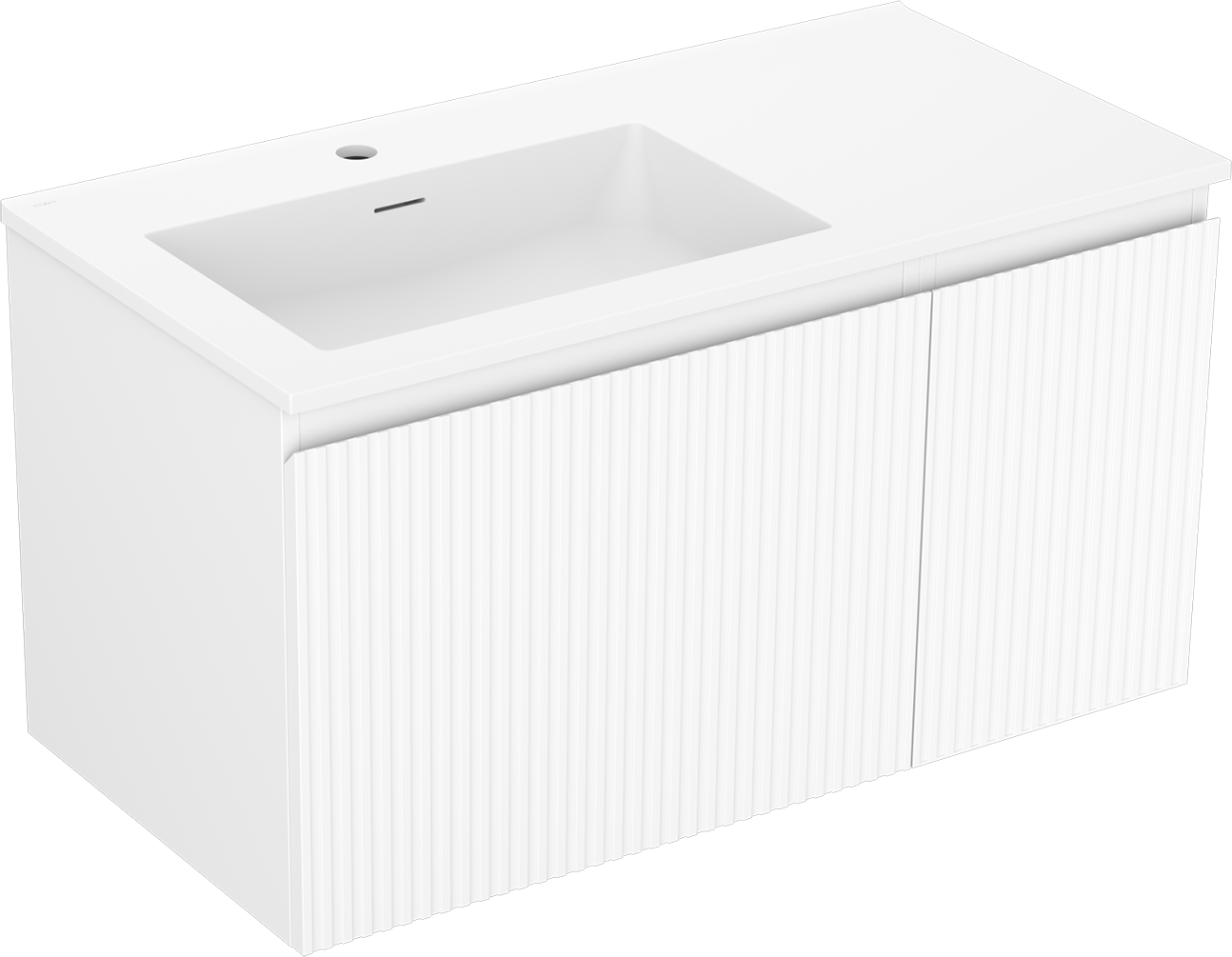Mexen Rivel vonios spintelė 90 cm su Otis kairine kriaukle, 1S, 1D, grioveliais, balta matinė - 91A23-09047-3-BBFF01-W18L01