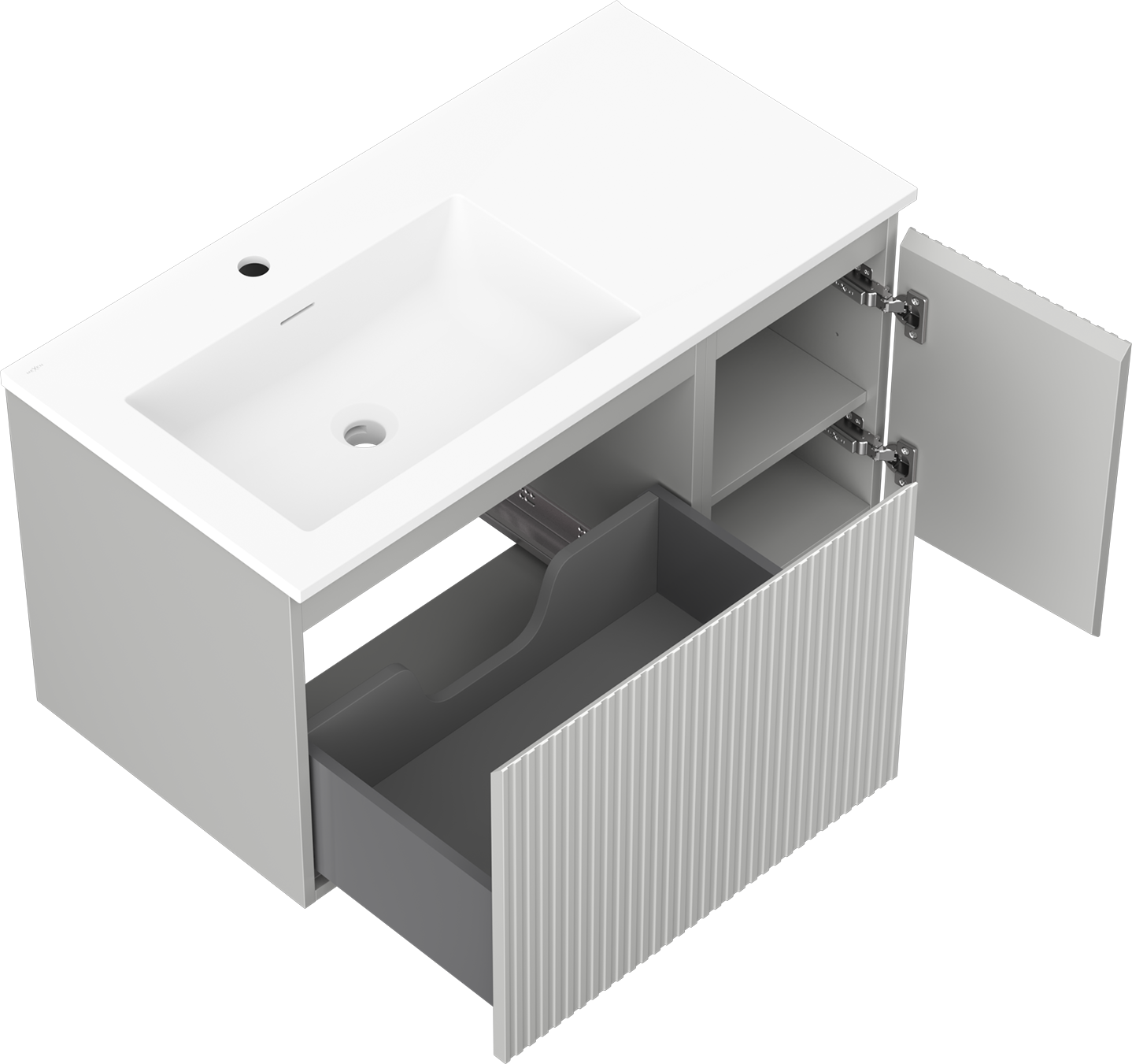 Mexen Rivel vonia 90 cm su praustuvu Otis kairė, 1S, 1D, rifliuota, pilka matinė/balta matinė - 91A23-09047-3-BBFF62-W18L01