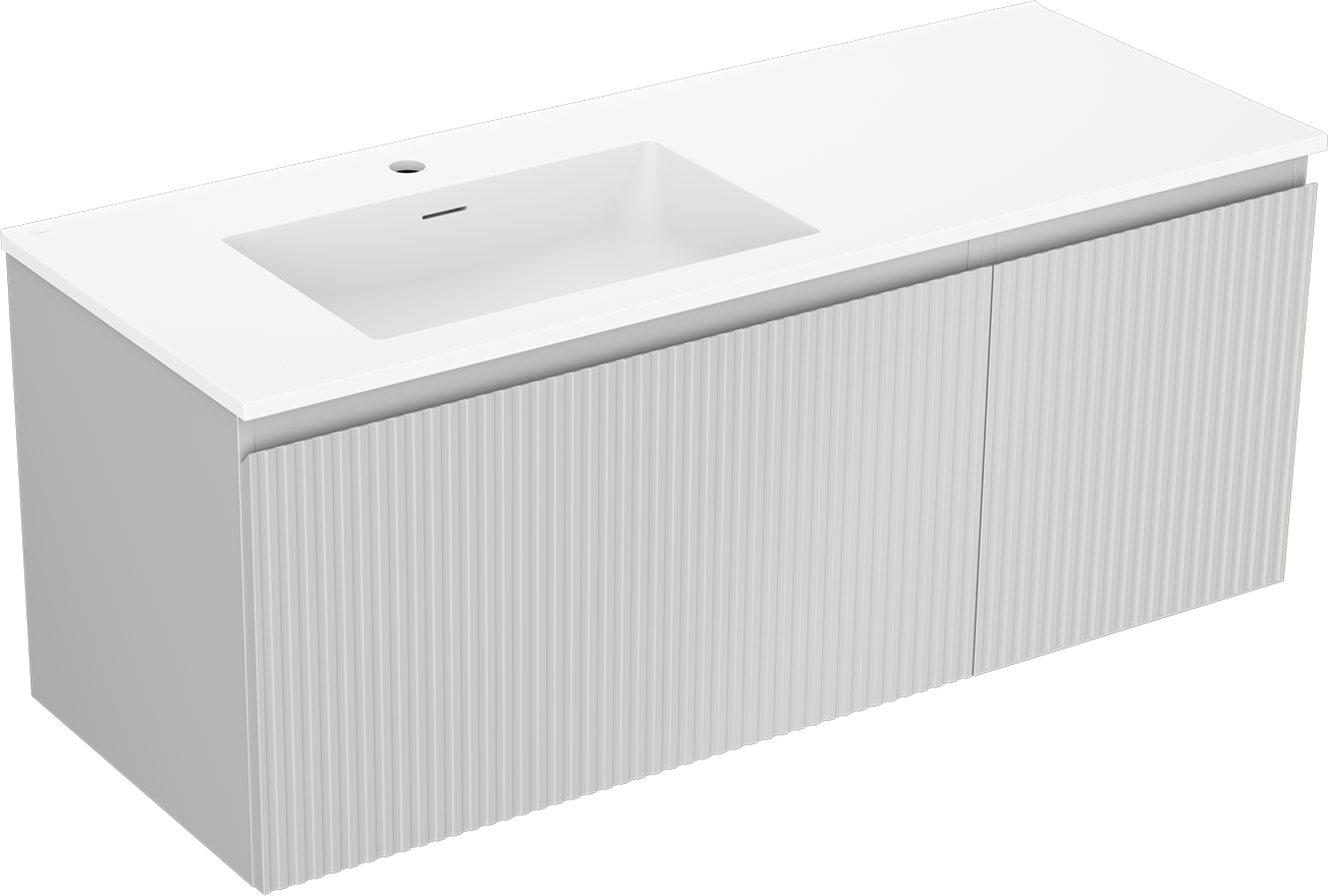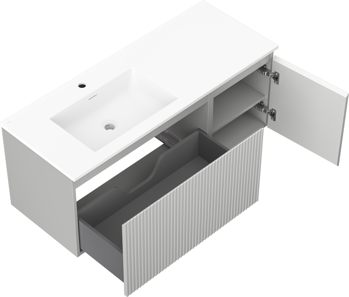 Mexen Rivel vonios spintelė 120 cm su kairiuoju Otis praustuvu, 1S, 1D, banguota, pilka matinė/balta matinė