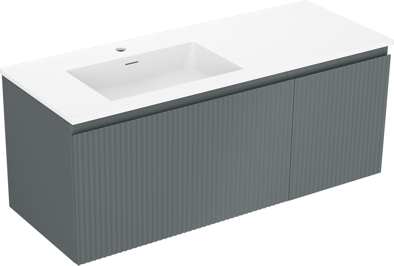 Mexen Rivel vonios spintele 120 cm su kriaukle Otis kaire, 1S, 1D, rifliuotas, matinė grafito/balta