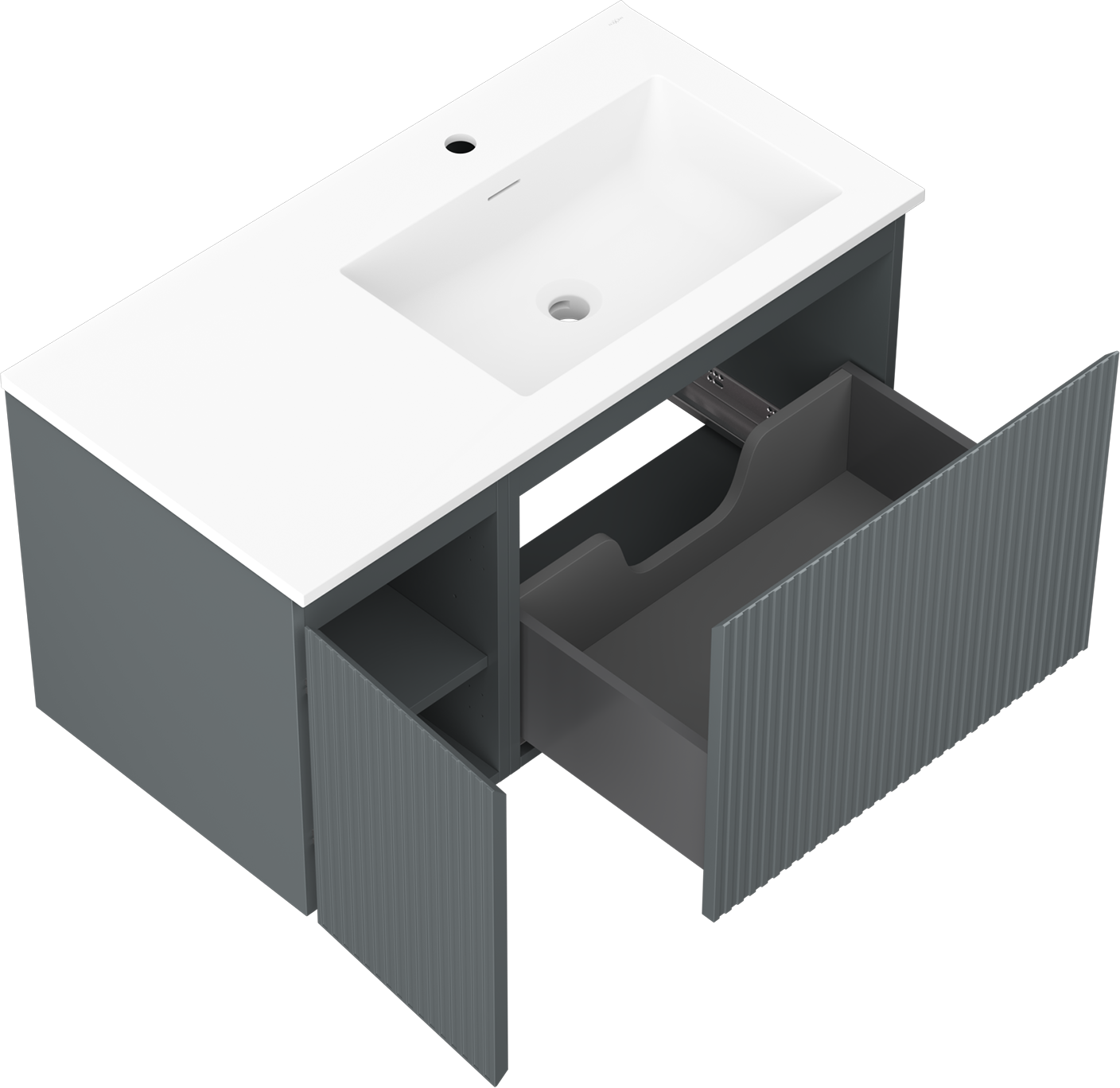 Mexen Rivel vonios spintele 90 cm su kriaukle Otis dešinėje, 1S, 1D, grioveliais, grafito matinė/balta matinė