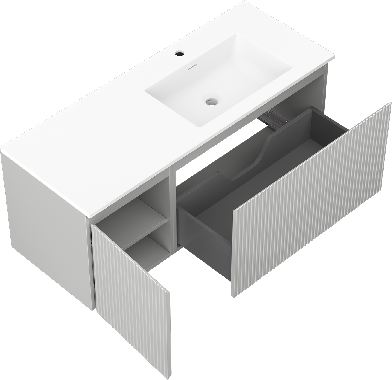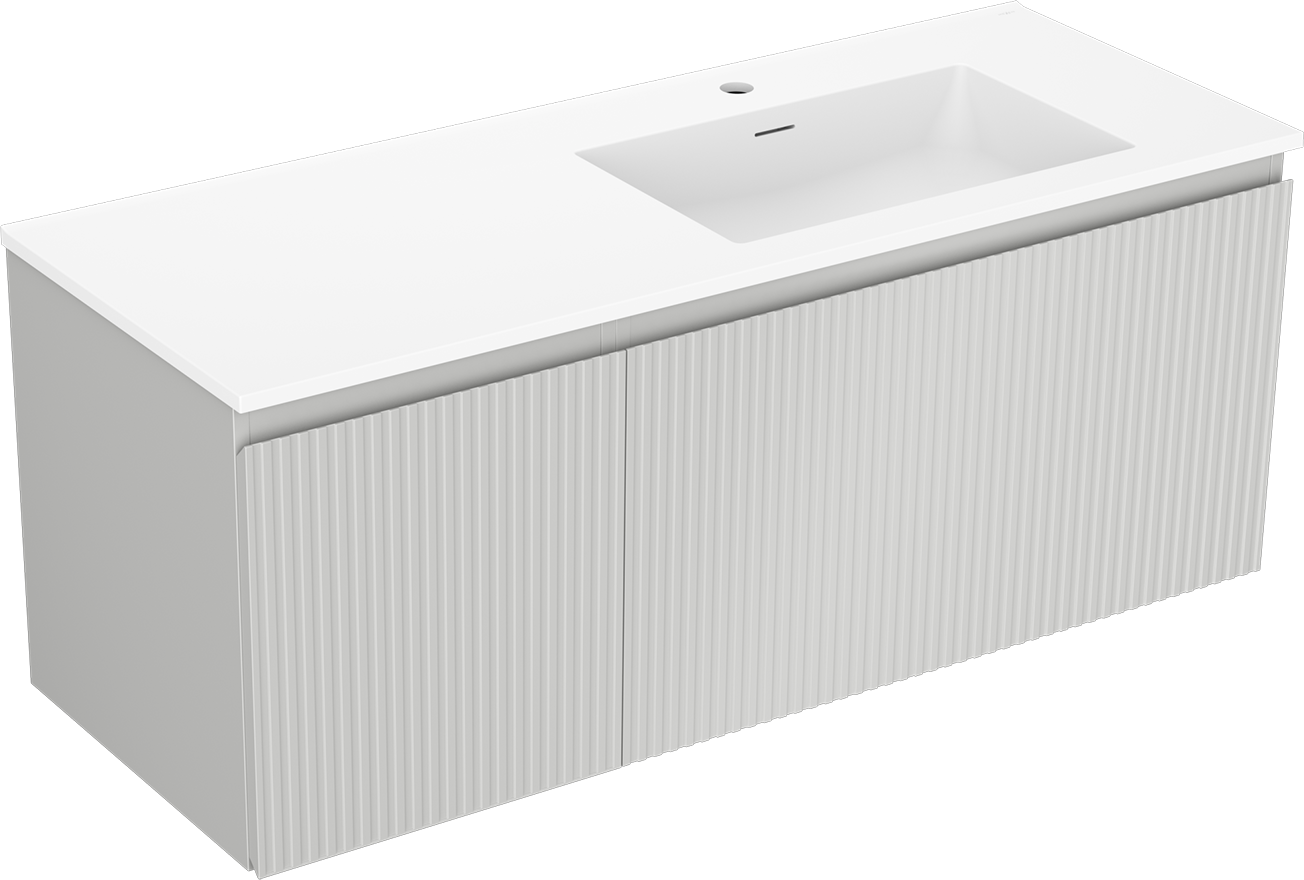 Mexen Rivel vonios kambario spintelė 120 cm su dešine Otis kriaukle, 1S, 1D, rifliuotas, pilkas matinis/baltas matinis