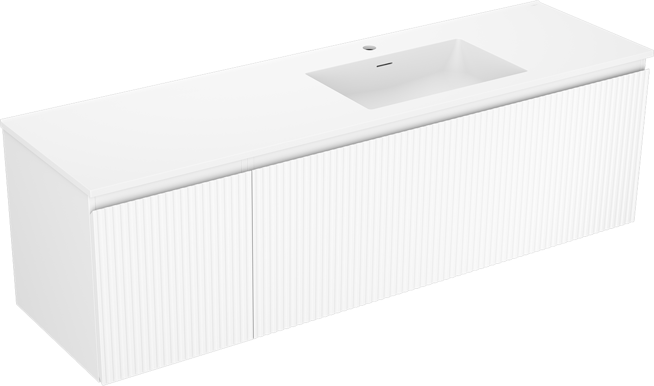 Mexen Rivel vonios spintelė 160 cm su praustuvu Otis dešinė, 1S, 1D, grioveli, balta matinė - 91A23-16047-3-BBFF01-W18P01