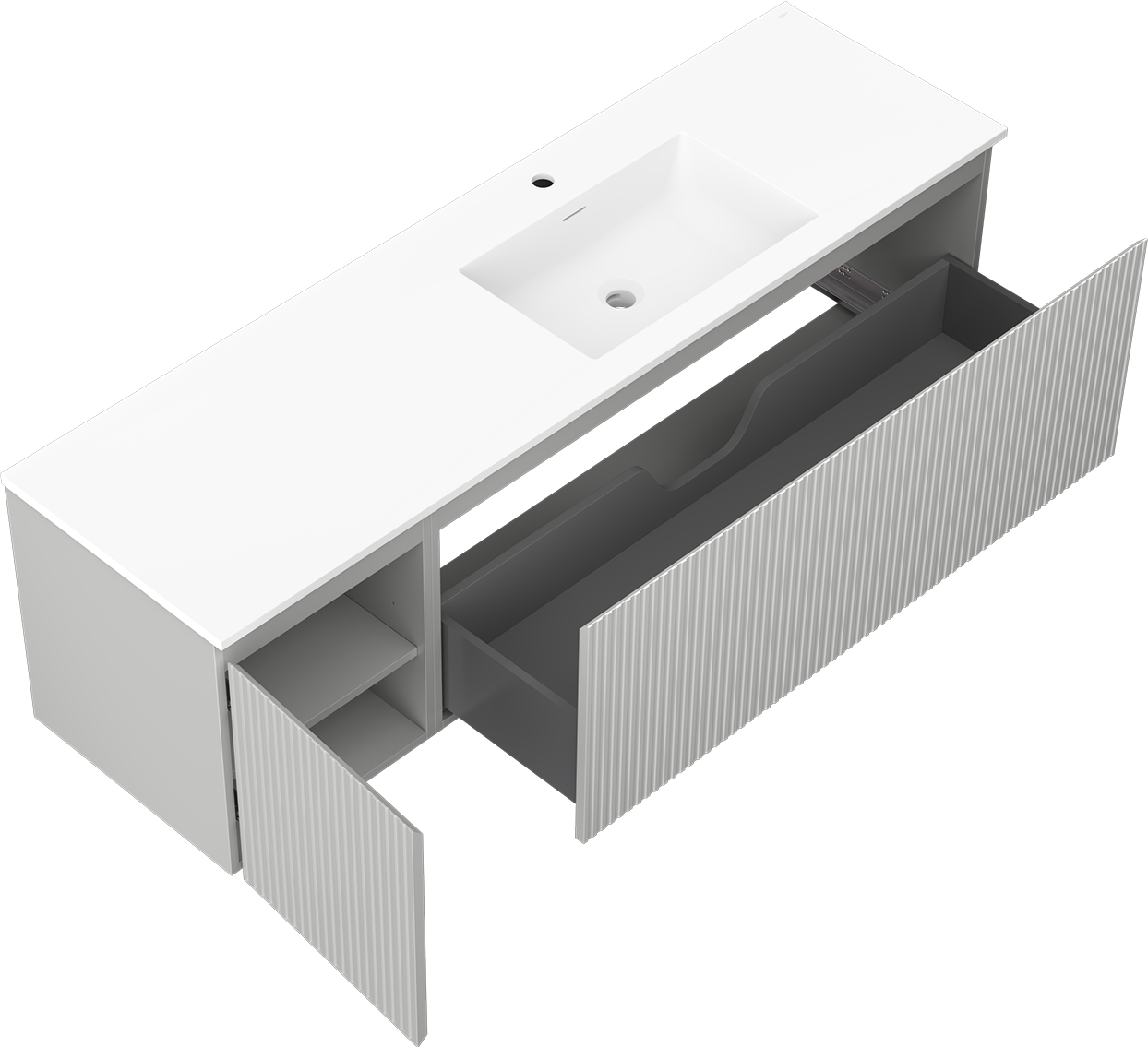 Mexen Rivel vonios spintelė 160 cm su Otis praustuvu, dešinė, 1S, 1D, rifliuota, pilka matiniu/balta matiniu