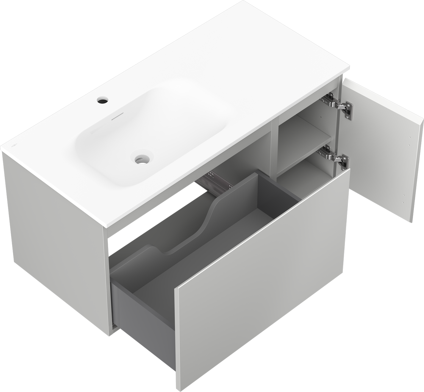 Iškirpimas stalčiuje yra suprojektuotas taip, kad tilptų sifonas, kuris yra būtinas kriauklės įrenginiuose. Dėl to baldas gali būti pilnai funkcionaliai sumontuotas, nereikalaujant atsisakyti vietos stalčiuje dėl įrenginio.