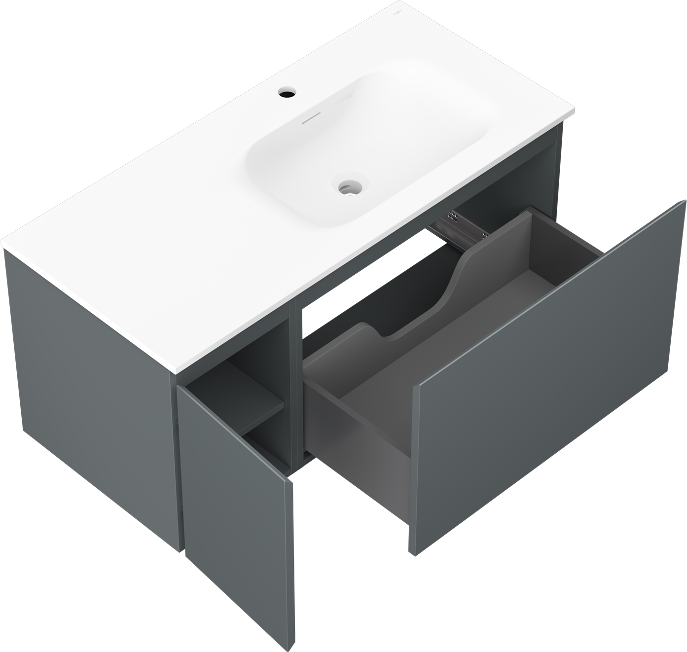 Iškirpimas stalčiuje yra suprojektuotas taip, kad tilptų sifonas, kuris yra būtinas kriauklės įrenginiuose. Dėl to baldas gali būti pilnai funkcionaliai sumontuotas, nereikalaujant atsisakyti vietos stalčiuje dėl įrenginio.
