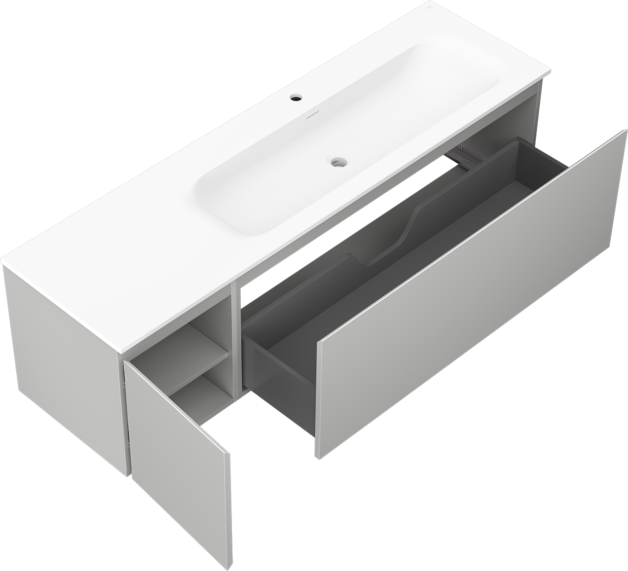 Mūsų moduliniai vonios baldai gali būti derinami tarpusavyje įvairiomis spalvų konfigūracijomis, leidžiant visiškai pritaikyti pagal asmeninius poreikius. Galima pasirinkti tiek atskirų elementų išvaizdą, tiek funkcijas, kas leidžia baldus pritaikyti pagal savo stiliaus ir naudojimo preferencijas.