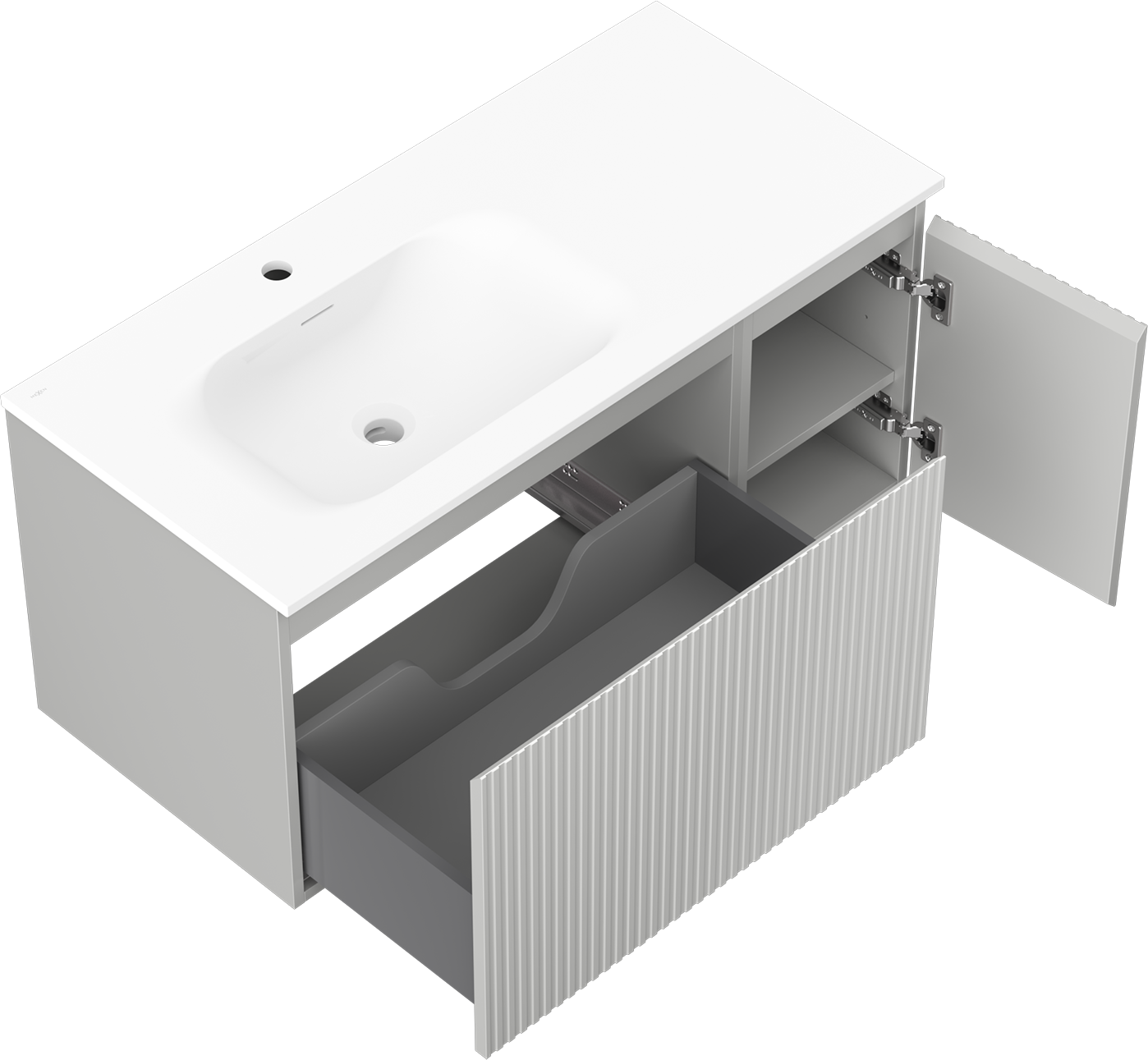 Mūsų moduliniai vonios baldai gali būti derinami tarpusavyje įvairiomis spalvų konfigūracijomis, leidžiant visiškai pritaikyti pagal asmeninius poreikius. Galima pasirinkti tiek atskirų elementų išvaizdą, tiek funkcijas, kas leidžia baldus pritaikyti pagal savo stiliaus ir naudojimo preferencijas.