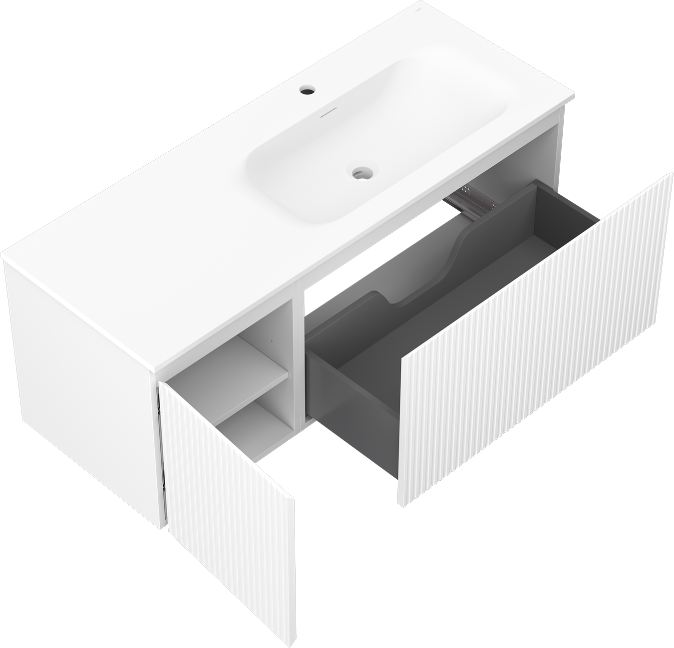Mūsų moduliniai vonios baldai gali būti derinami tarpusavyje įvairiomis spalvų konfigūracijomis, leidžiant visiškai pritaikyti pagal asmeninius poreikius. Galima pasirinkti tiek atskirų elementų išvaizdą, tiek funkcijas, kas leidžia baldus pritaikyti pagal savo stiliaus ir naudojimo preferencijas.