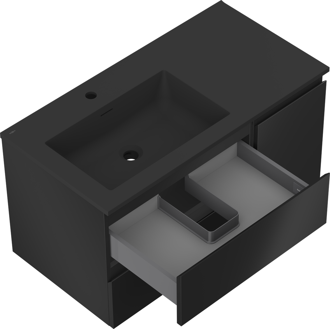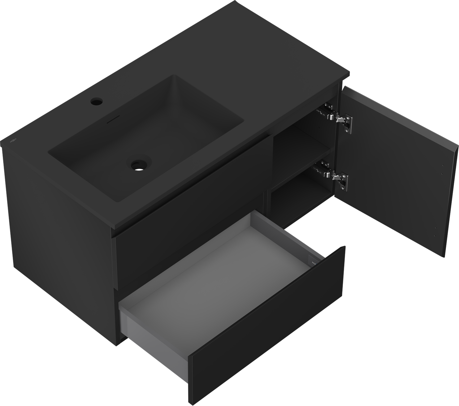 Mexen Orio vonios kambario spintelė 90 cm su Otis kairine kriaukle, 2S, 1D, juoda matinė - 91A13-09047-3-BBFFF71-W18L71