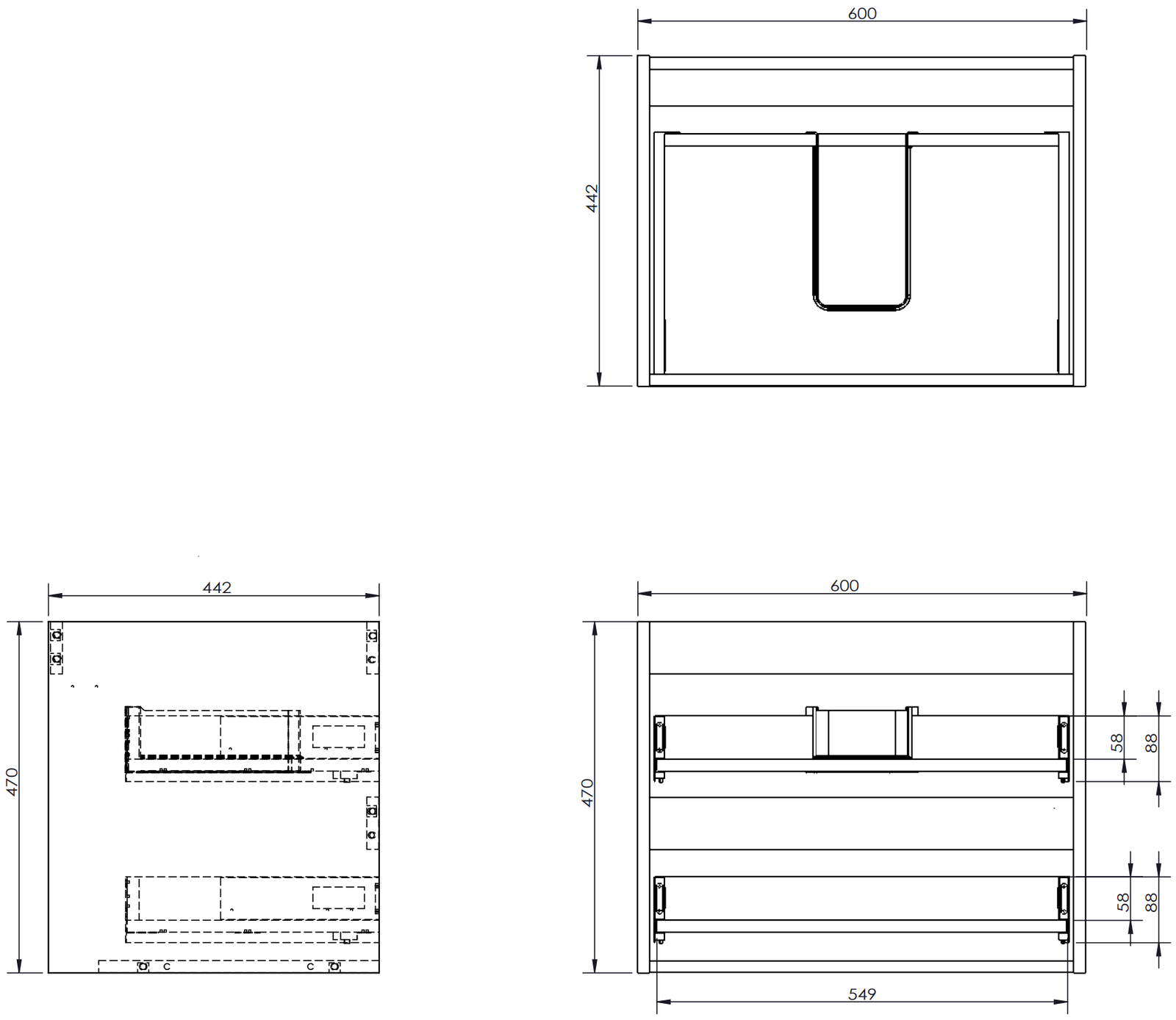 Iškirpimas stalčiuje yra suprojektuotas taip, kad tilptų sifonas, kuris yra būtinas kriauklės įrenginiuose. Dėl to baldas gali būti pilnai funkcionaliai sumontuotas, nereikalaujant atsisakyti vietos stalčiuje dėl įrenginio.