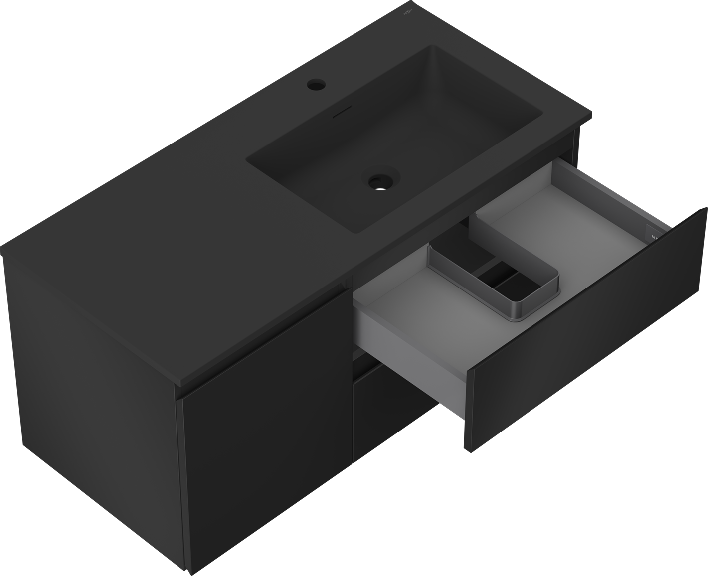 Iškirpimas stalčiuje yra suprojektuotas taip, kad tilptų sifonas, kuris yra būtinas kriauklės įrenginiuose. Dėl to baldas gali būti pilnai funkcionaliai sumontuotas, nereikalaujant atsisakyti vietos stalčiuje dėl įrenginio.