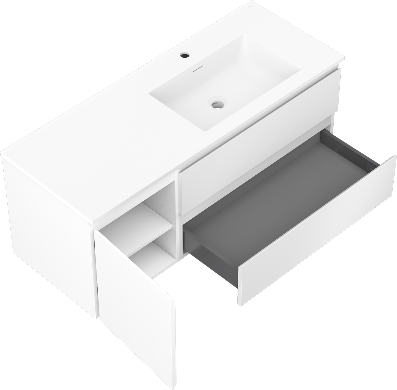 Mūsų moduliniai vonios baldai gali būti derinami tarpusavyje įvairiomis spalvų konfigūracijomis, leidžiant visiškai pritaikyti pagal asmeninius poreikius. Galima pasirinkti tiek atskirų elementų išvaizdą, tiek funkcijas, kas leidžia baldus pritaikyti pagal savo stiliaus ir naudojimo preferencijas.
