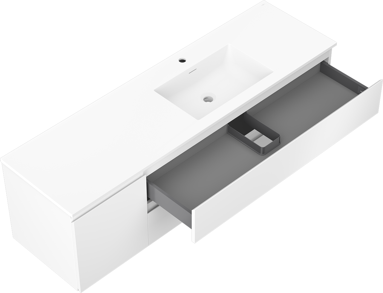 Iškirpimas stalčiuje yra suprojektuotas taip, kad tilptų sifonas, kuris yra būtinas kriauklės įrenginiuose. Dėl to baldas gali būti pilnai funkcionaliai sumontuotas, nereikalaujant atsisakyti vietos stalčiuje dėl įrenginio.