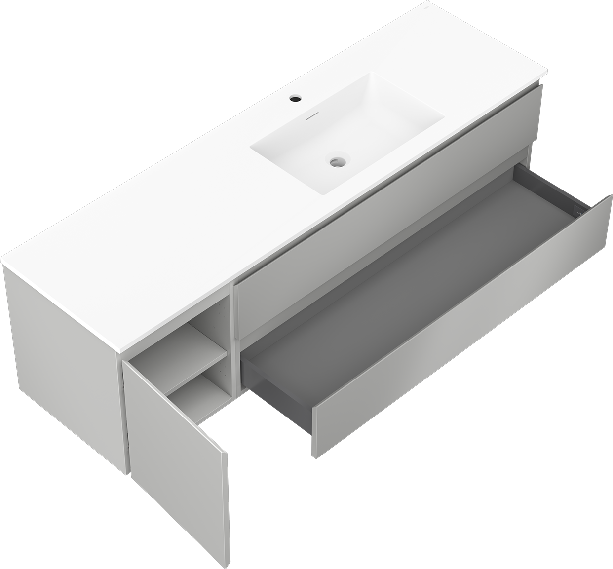 Mūsų moduliniai vonios baldai gali būti derinami tarpusavyje įvairiomis spalvų konfigūracijomis, leidžiant visiškai pritaikyti pagal asmeninius poreikius. Galima pasirinkti tiek atskirų elementų išvaizdą, tiek funkcijas, kas leidžia baldus pritaikyti pagal savo stiliaus ir naudojimo preferencijas.