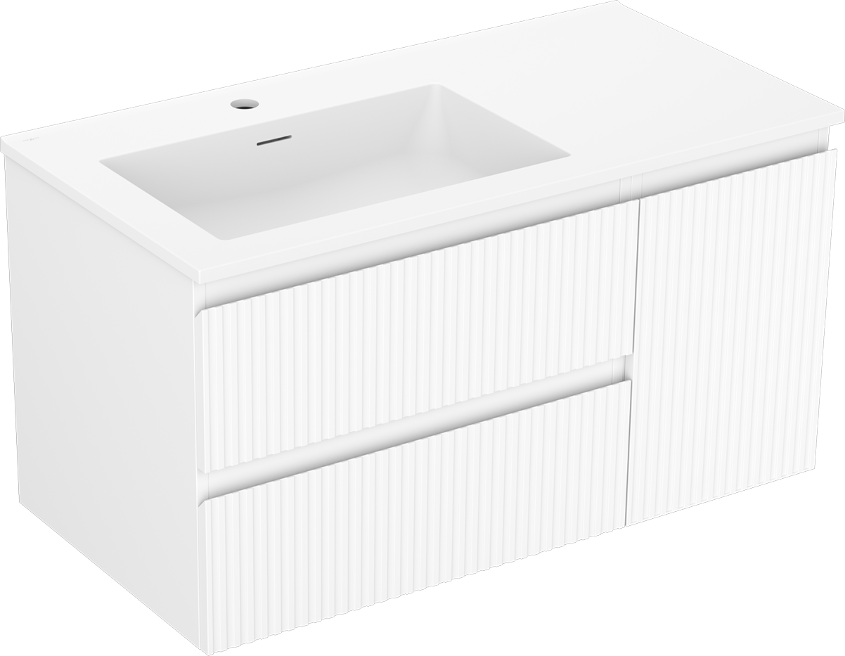 Mexen Rivel vonios kambario spintelė 90 cm su kriaukle Otis kairė, 2S, 1D, rievuota, balta matinė - 91A23-09047-3-BBFFF01-W18L01