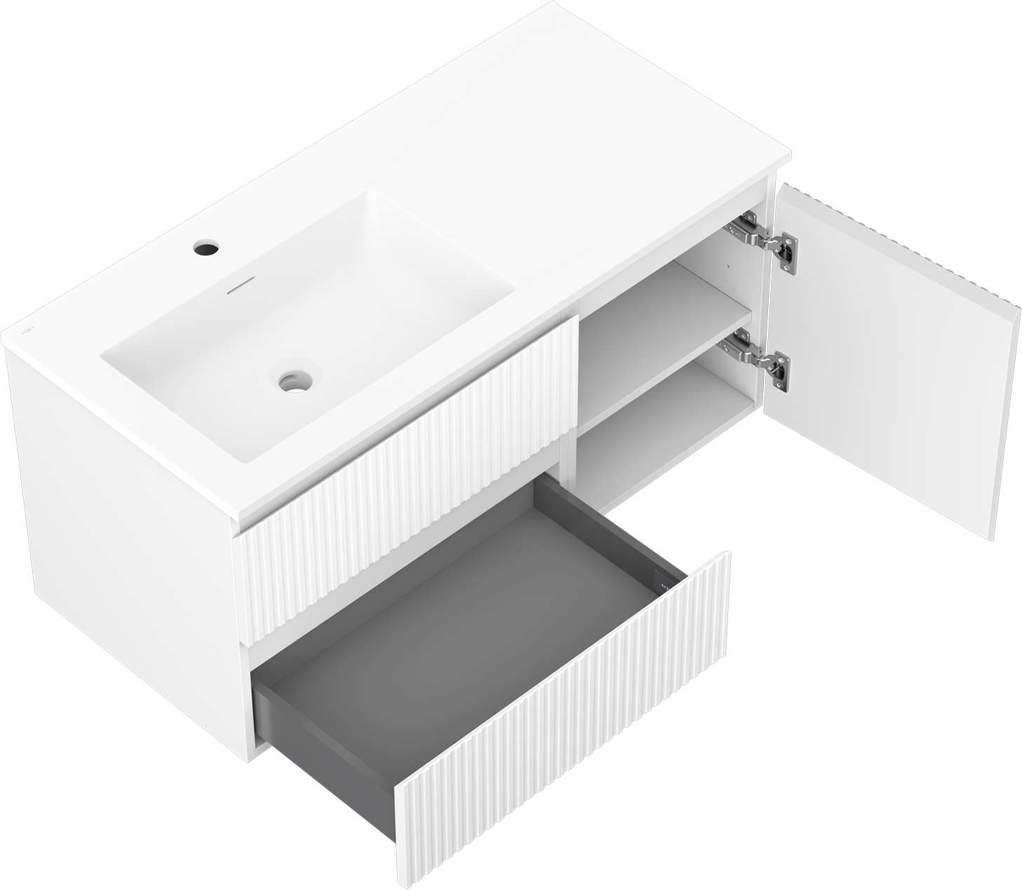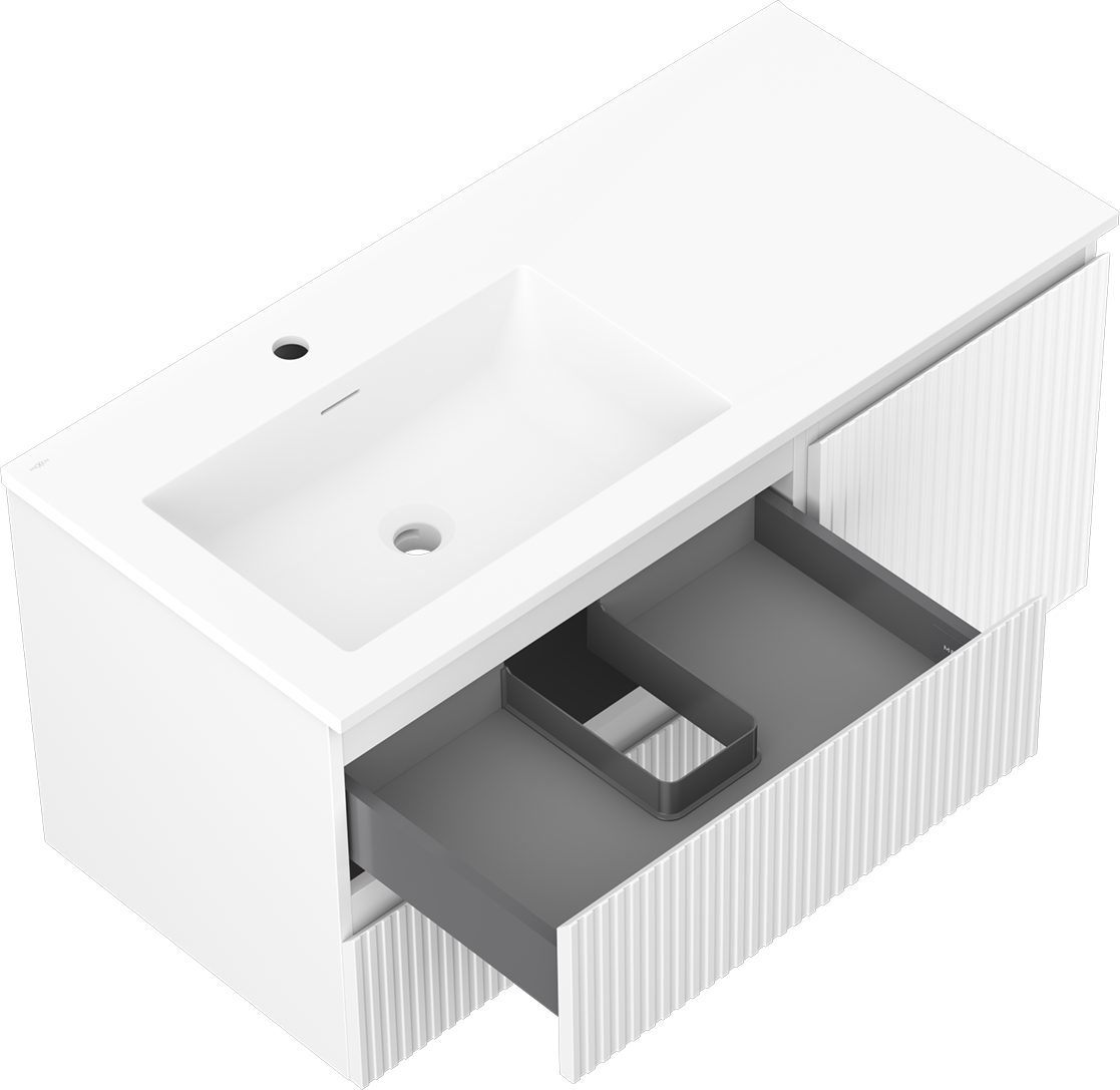 Iškirpimas stalčiuje yra suprojektuotas taip, kad tilptų sifonas, kuris yra būtinas kriauklės įrenginiuose. Dėl to baldas gali būti pilnai funkcionaliai sumontuotas, nereikalaujant atsisakyti vietos stalčiuje dėl įrenginio.