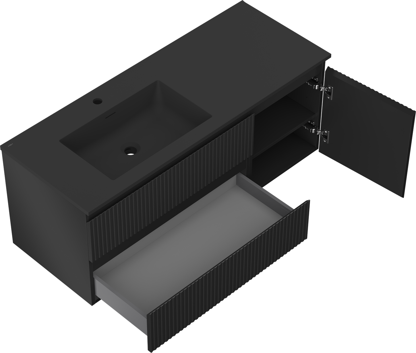 Iškirpimas stalčiuje yra suprojektuotas taip, kad tilptų sifonas, kuris yra būtinas kriauklės įrenginiuose. Dėl to baldas gali būti pilnai funkcionaliai sumontuotas, nereikalaujant atsisakyti vietos stalčiuje dėl įrenginio.