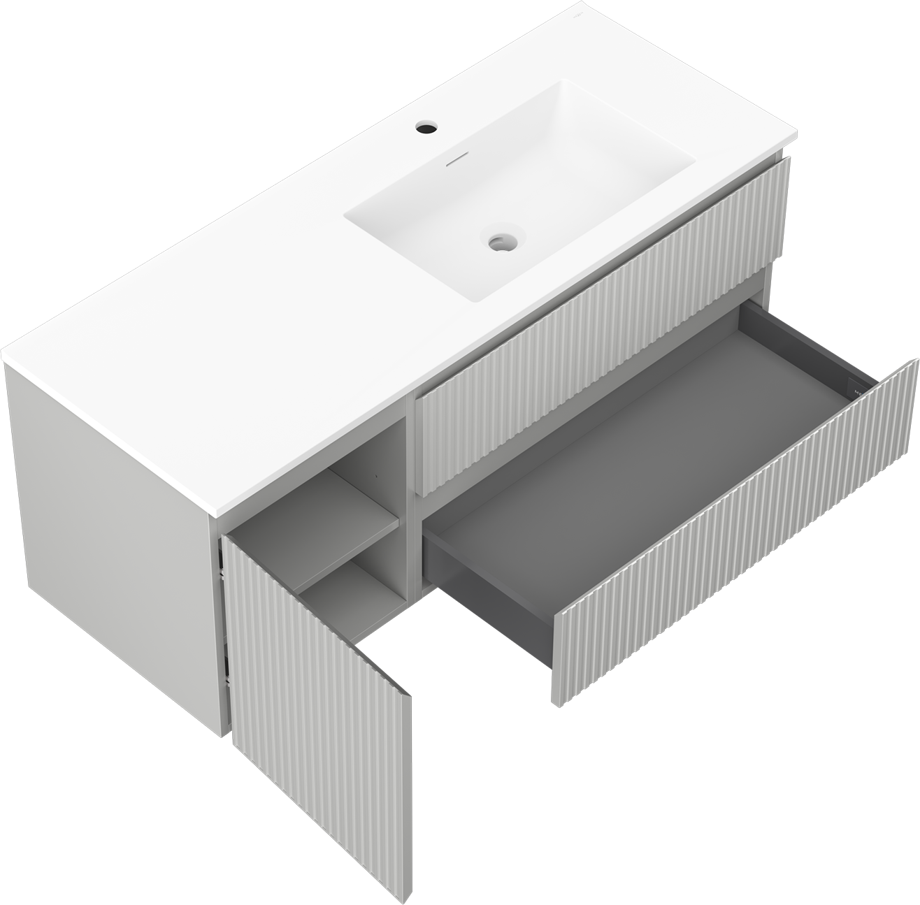 Mūsų moduliniai vonios baldai gali būti derinami tarpusavyje įvairiomis spalvų konfigūracijomis, leidžiant visiškai pritaikyti pagal asmeninius poreikius. Galima pasirinkti tiek atskirų elementų išvaizdą, tiek funkcijas, kas leidžia baldus pritaikyti pagal savo stiliaus ir naudojimo preferencijas.