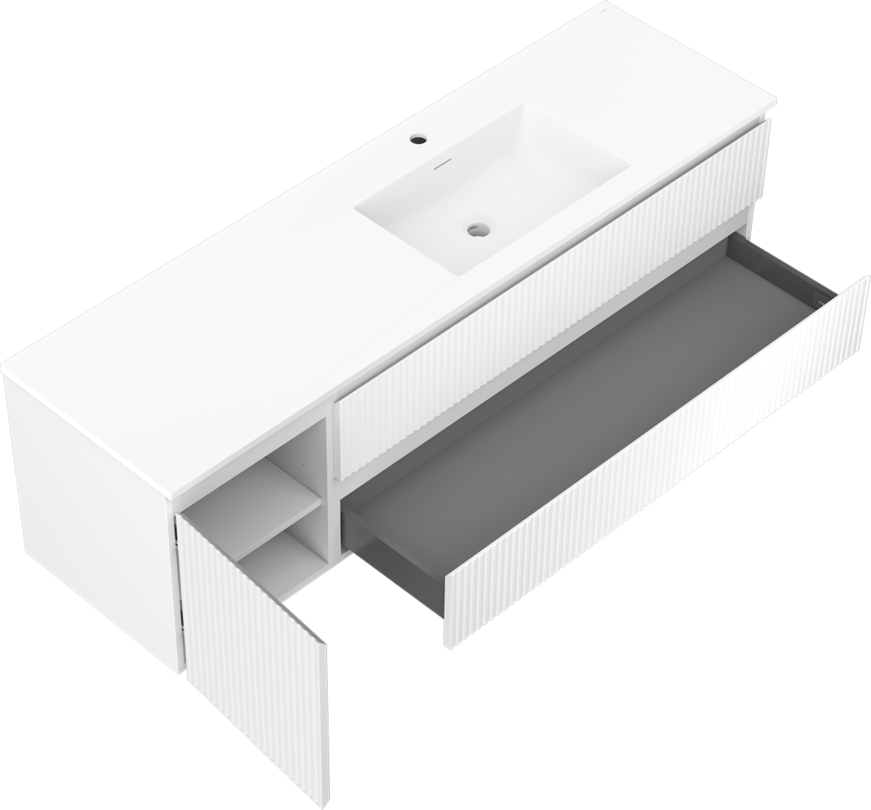 Mūsų moduliniai vonios baldai gali būti derinami tarpusavyje įvairiomis spalvų konfigūracijomis, leidžiant visiškai pritaikyti pagal asmeninius poreikius. Galima pasirinkti tiek atskirų elementų išvaizdą, tiek funkcijas, kas leidžia baldus pritaikyti pagal savo stiliaus ir naudojimo preferencijas.