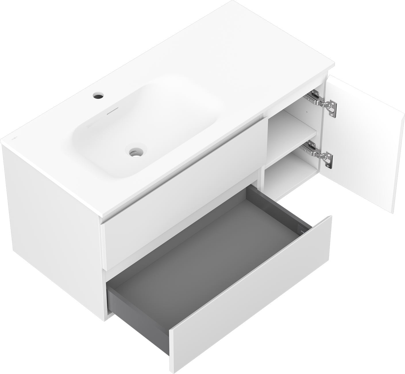 Mexen Orio vonios spintelė 100 cm su Vela kairiąja kriaukle, 2S, 1D, balta matinė - 91A13-10047-3-BBFFFF01-W23L01