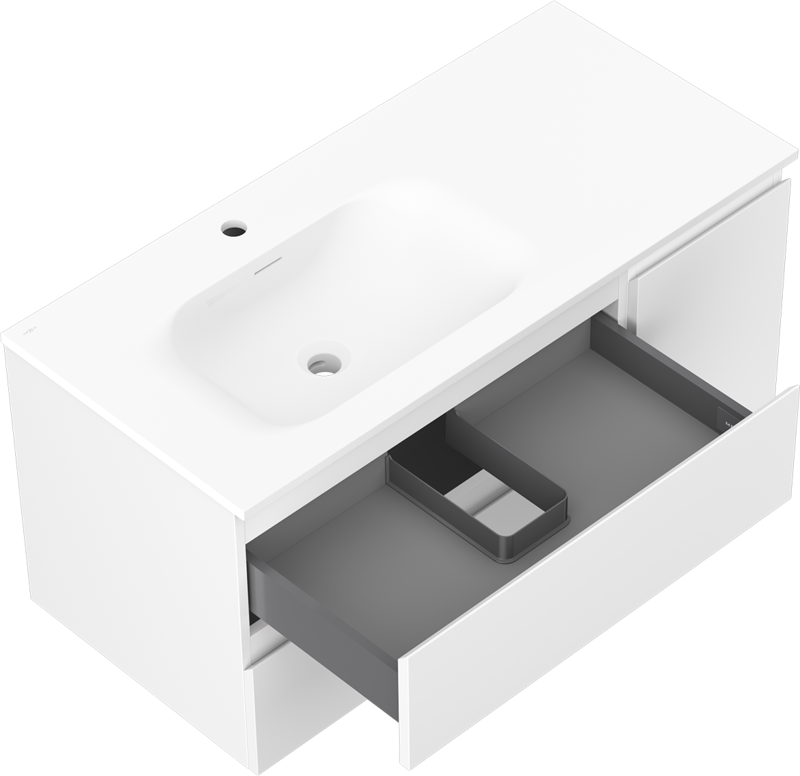 Iškirpimas stalčiuje yra suprojektuotas taip, kad tilptų sifonas, kuris yra būtinas kriauklės įrenginiuose. Dėl to baldas gali būti pilnai funkcionaliai sumontuotas, nereikalaujant atsisakyti vietos stalčiuje dėl įrenginio.