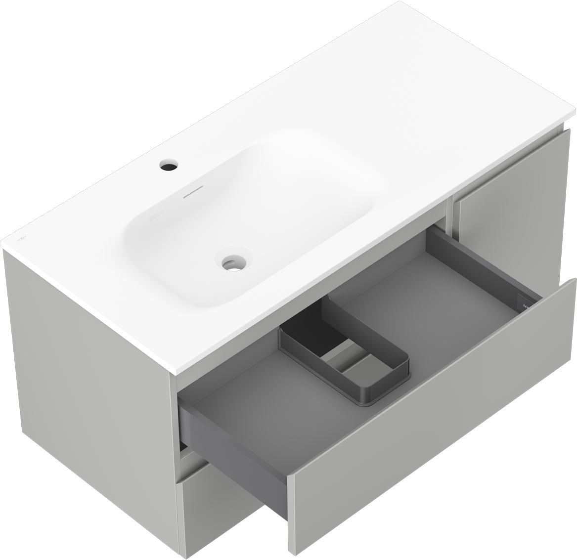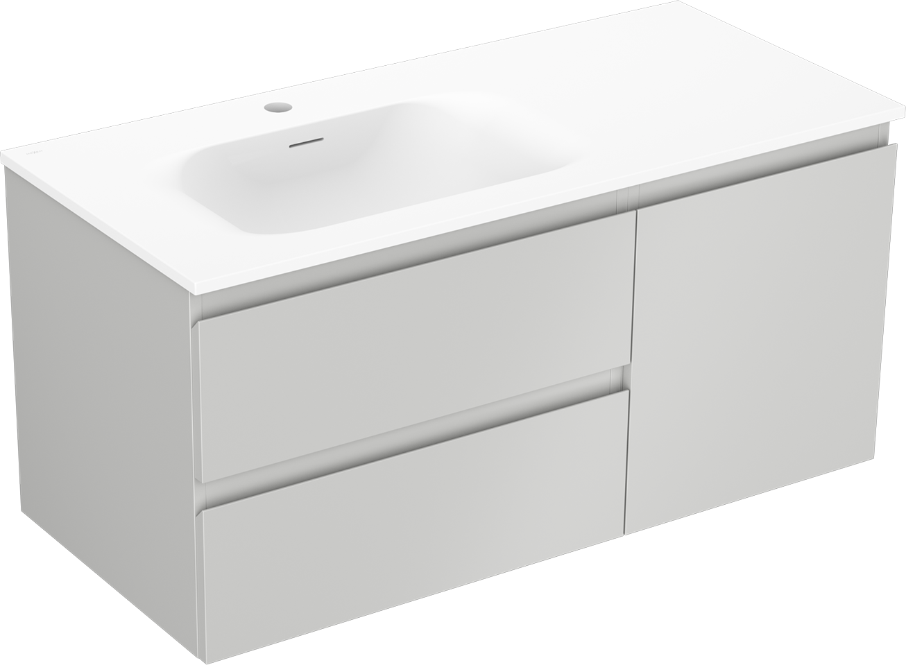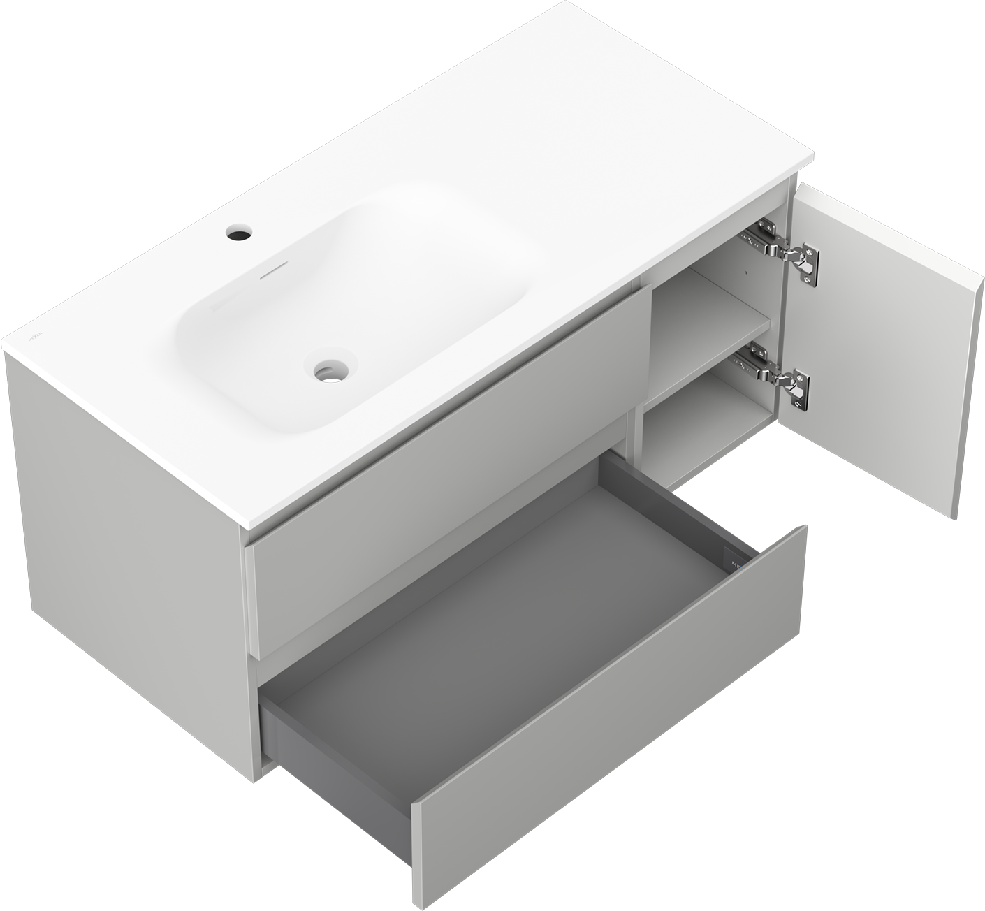 Mexen Orio vonios spintelė 100 cm su kriaukle Vela kairė, 2S, 1D, pilka matinė/balta matinė - 91A13-10047-3-BBFFF62-W23L01