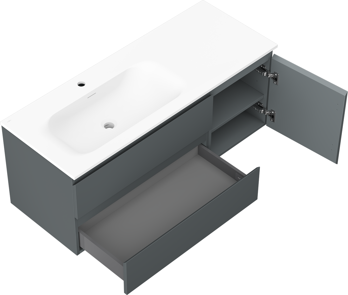 Mūsų moduliniai vonios baldai gali būti derinami tarpusavyje įvairiomis spalvų konfigūracijomis, leidžiant visiškai pritaikyti pagal asmeninius poreikius. Galima pasirinkti tiek atskirų elementų išvaizdą, tiek funkcijas, kas leidžia baldus pritaikyti pagal savo stiliaus ir naudojimo preferencijas.