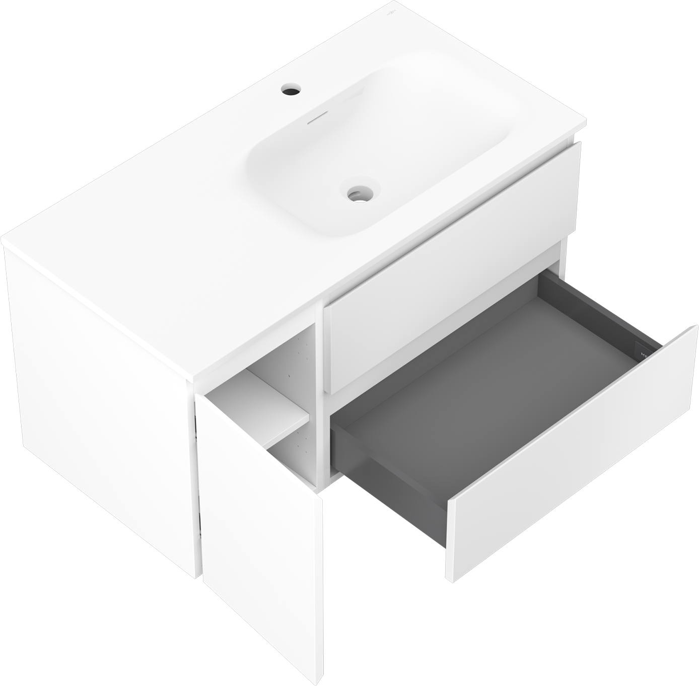Iškirpimas stalčiuje yra suprojektuotas taip, kad tilptų sifonas, kuris yra būtinas kriauklės įrenginiuose. Dėl to baldas gali būti pilnai funkcionaliai sumontuotas, nereikalaujant atsisakyti vietos stalčiuje dėl įrenginio.