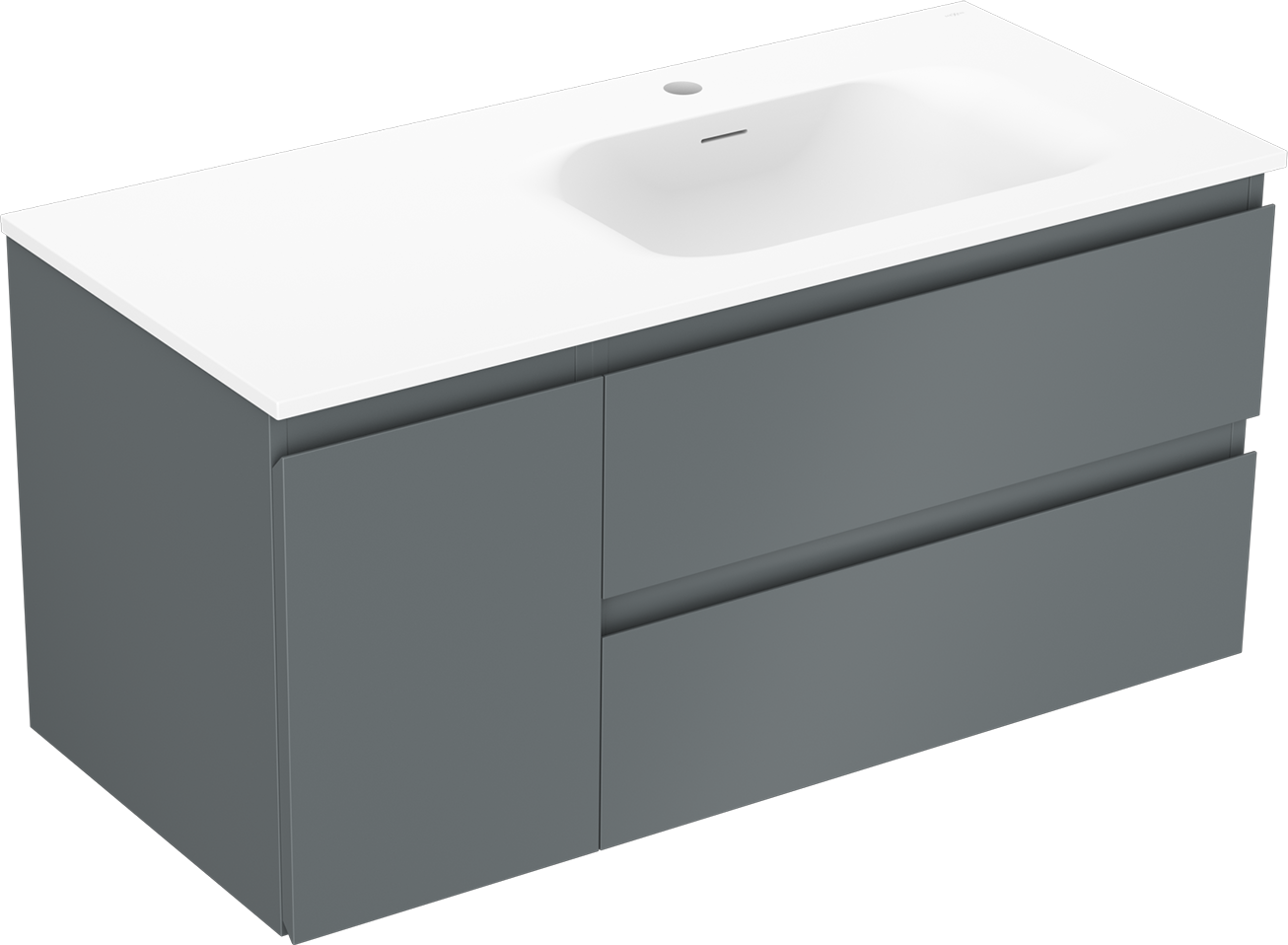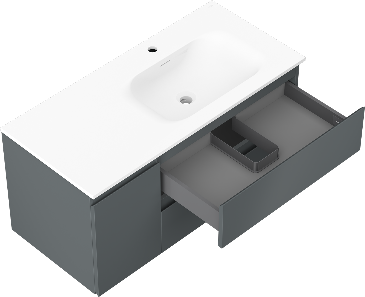 Mexen Orio vonios spintelė 100 cm su dešiniuoju praustuvu Vela, 2S, 1D, grafitas matinis/balta matinė