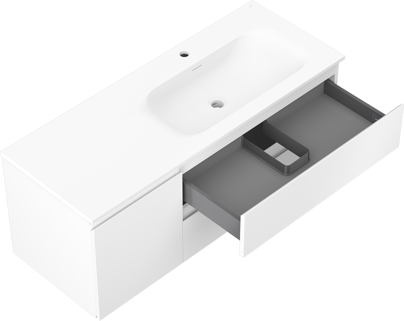 Iškirpimas stalčiuje yra suprojektuotas taip, kad tilptų sifonas, kuris yra būtinas kriauklės įrenginiuose. Dėl to baldas gali būti pilnai funkcionaliai sumontuotas, nereikalaujant atsisakyti vietos stalčiuje dėl įrenginio.