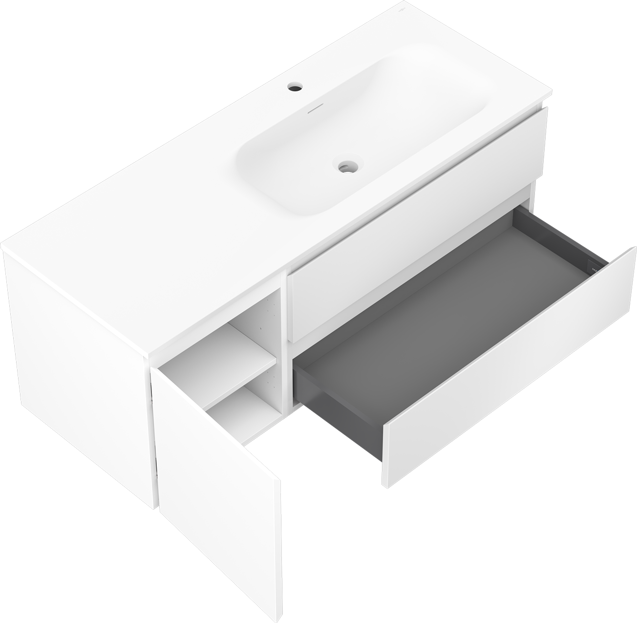Mūsų moduliniai vonios baldai gali būti derinami tarpusavyje įvairiomis spalvų konfigūracijomis, leidžiant visiškai pritaikyti pagal asmeninius poreikius. Galima pasirinkti tiek atskirų elementų išvaizdą, tiek funkcijas, kas leidžia baldus pritaikyti pagal savo stiliaus ir naudojimo preferencijas.