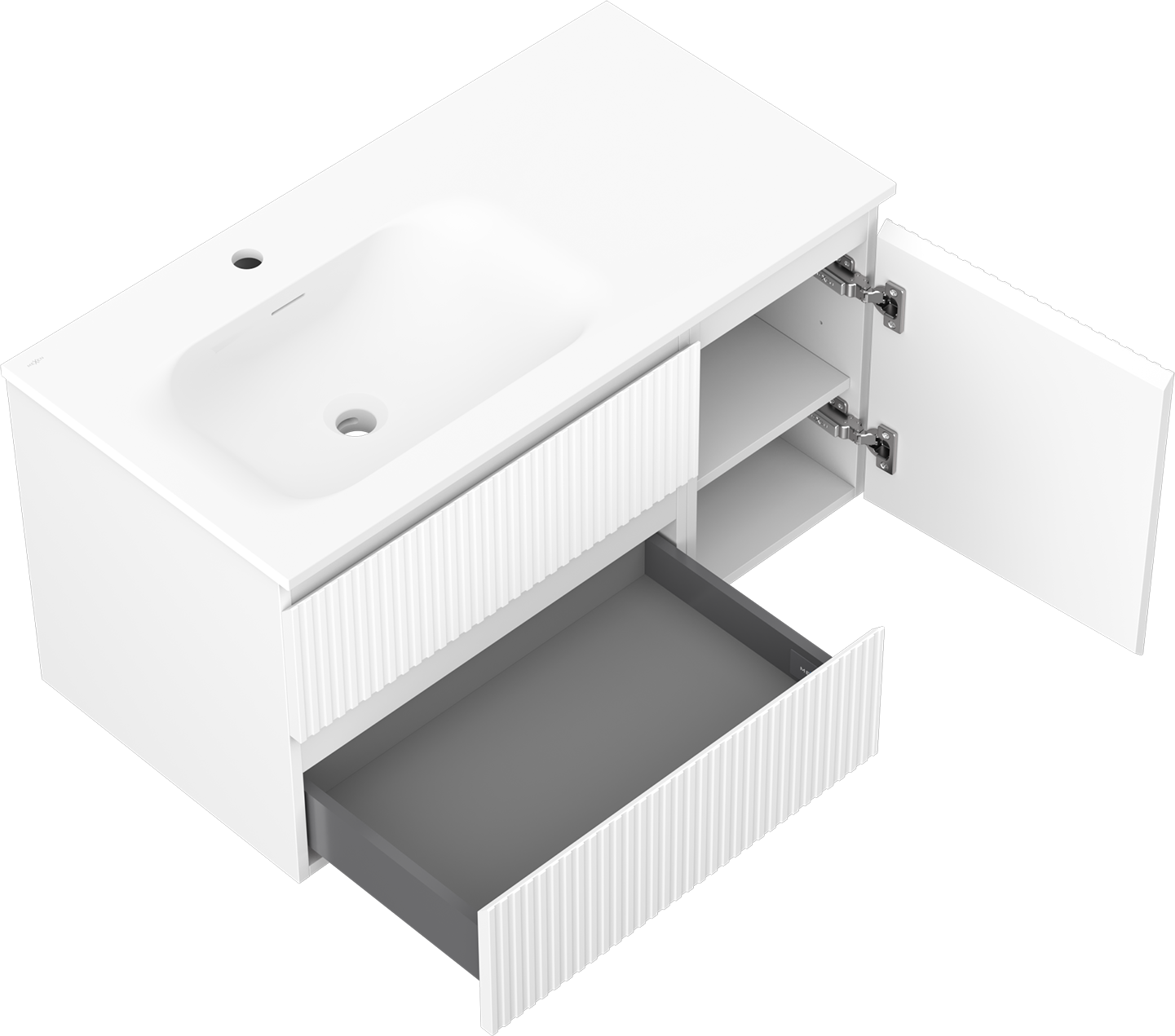 Iškirpimas stalčiuje yra suprojektuotas taip, kad tilptų sifonas, kuris yra būtinas kriauklės įrenginiuose. Dėl to baldas gali būti pilnai funkcionaliai sumontuotas, nereikalaujant atsisakyti vietos stalčiuje dėl įrenginio.