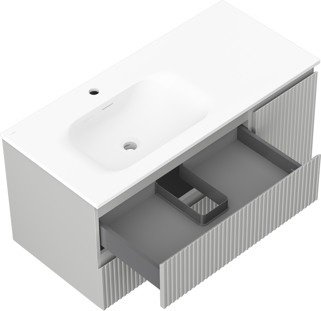 Iškirpimas stalčiuje yra suprojektuotas taip, kad tilptų sifonas, kuris yra būtinas kriauklės įrenginiuose. Dėl to baldas gali būti pilnai funkcionaliai sumontuotas, nereikalaujant atsisakyti vietos stalčiuje dėl įrenginio.