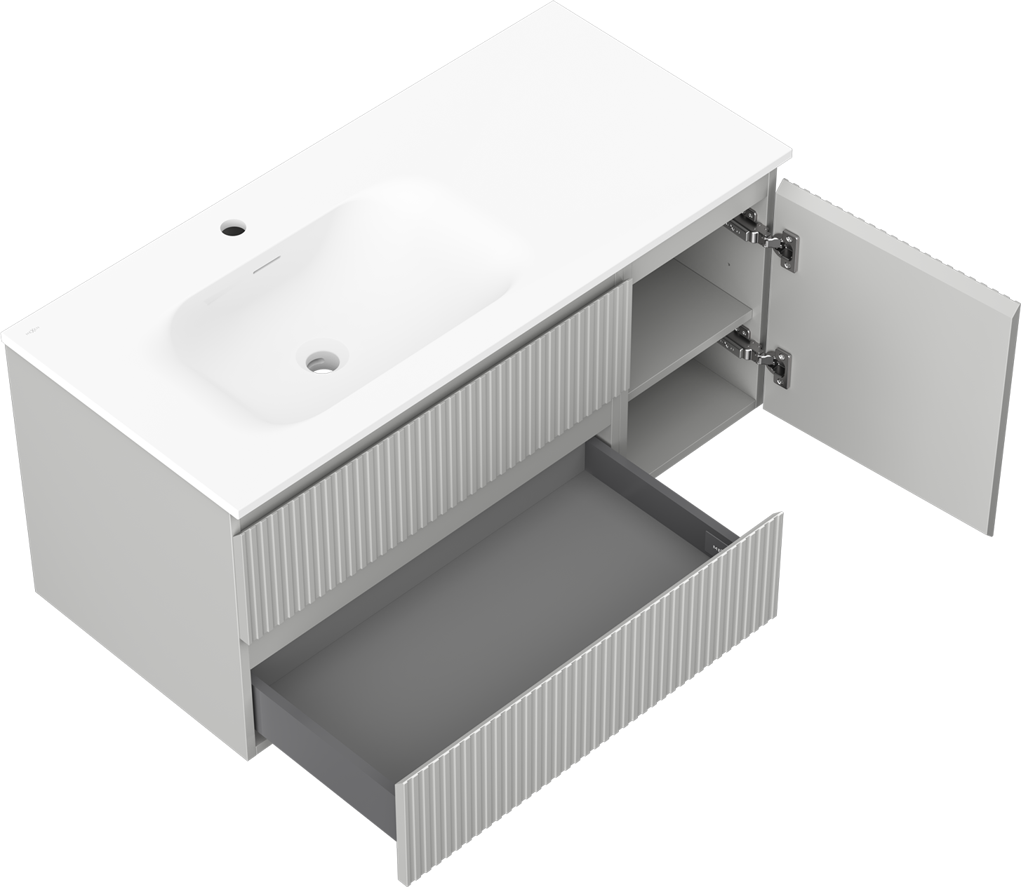 Mūsų moduliniai vonios baldai gali būti derinami tarpusavyje įvairiomis spalvų konfigūracijomis, leidžiant visiškai pritaikyti pagal asmeninius poreikius. Galima pasirinkti tiek atskirų elementų išvaizdą, tiek funkcijas, kas leidžia baldus pritaikyti pagal savo stiliaus ir naudojimo preferencijas.