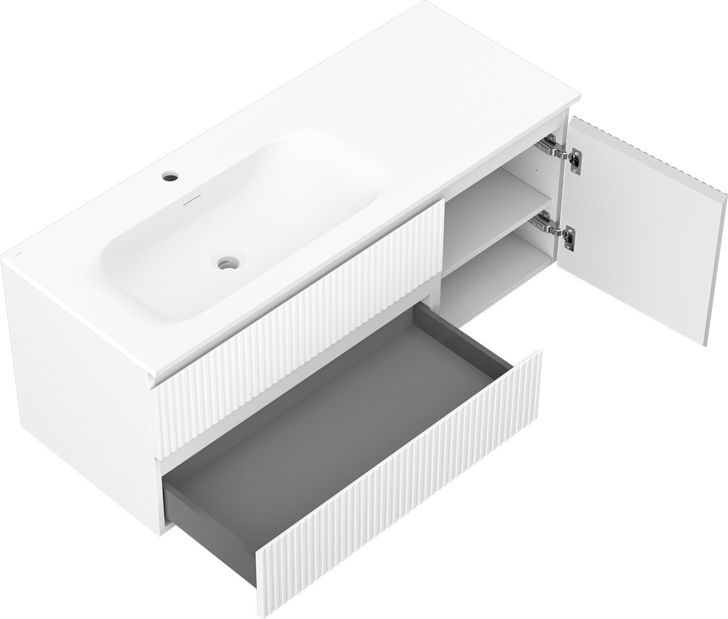 Iškirpimas stalčiuje yra suprojektuotas taip, kad tilptų sifonas, kuris yra būtinas kriauklės įrenginiuose. Dėl to baldas gali būti pilnai funkcionaliai sumontuotas, nereikalaujant atsisakyti vietos stalčiuje dėl įrenginio.